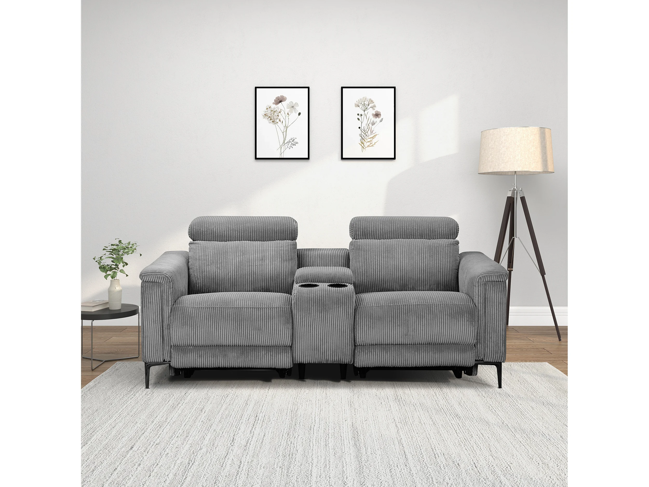 Lund | Fauteuil inclinable double avec fonction manuelle en velours côtelé gris
