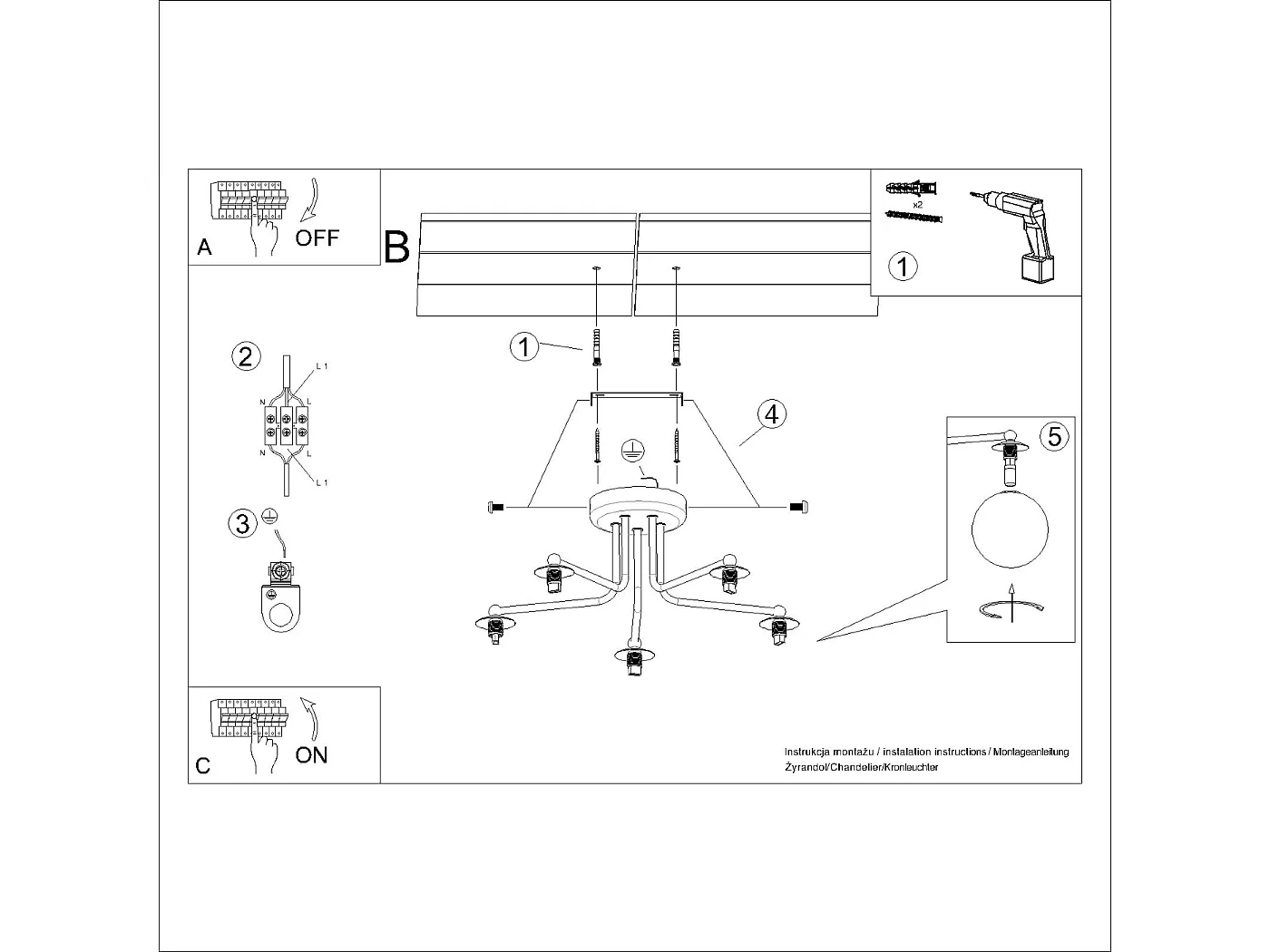 Lustres Vivow moderne en acier - 5 sources lumineuses 4000K - L.60 x H.80 cm - blanc