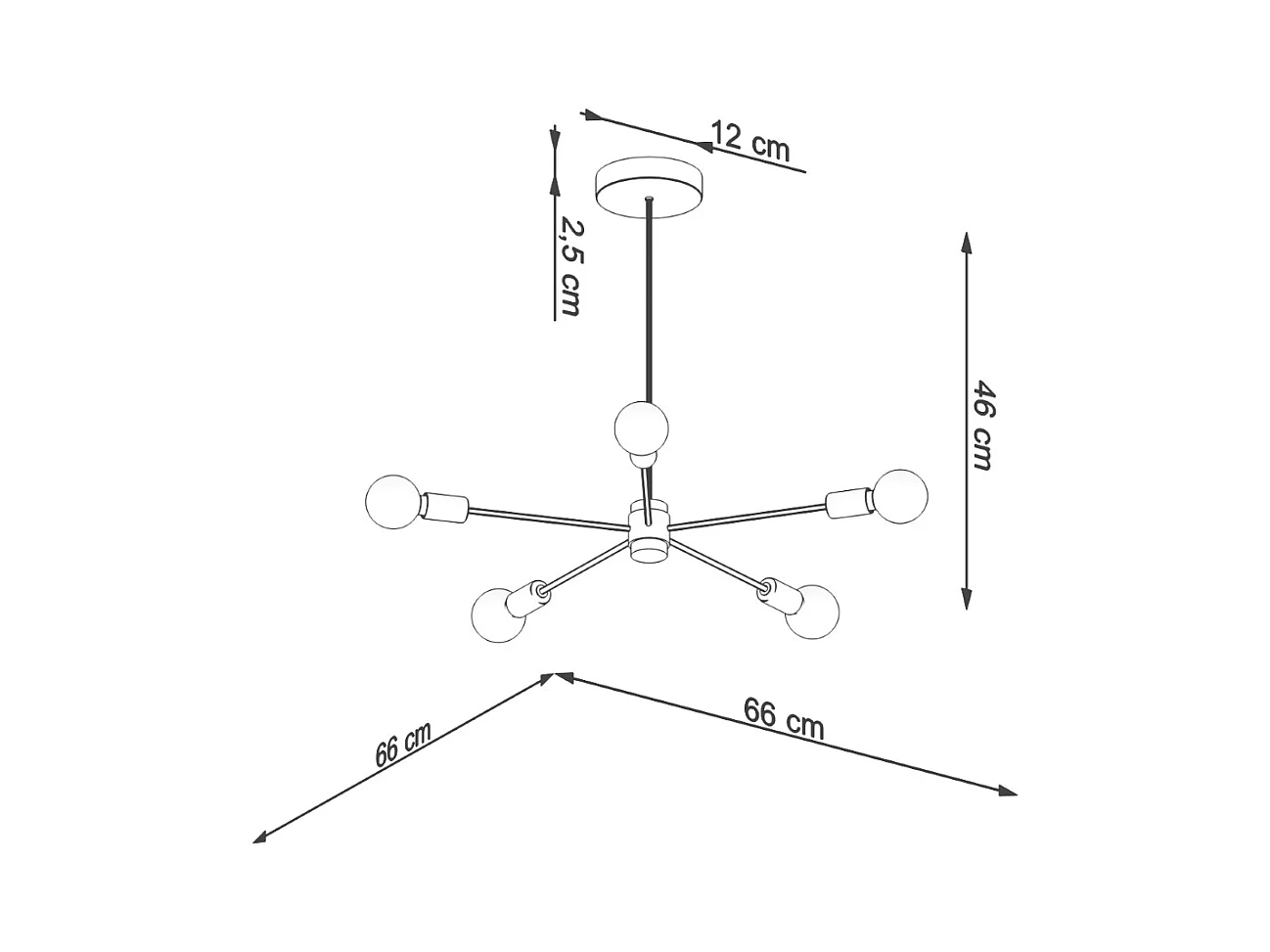 Sollux Lighting Lango Plafonnier semi-affleurant à bras multiples, noir, 5x E27