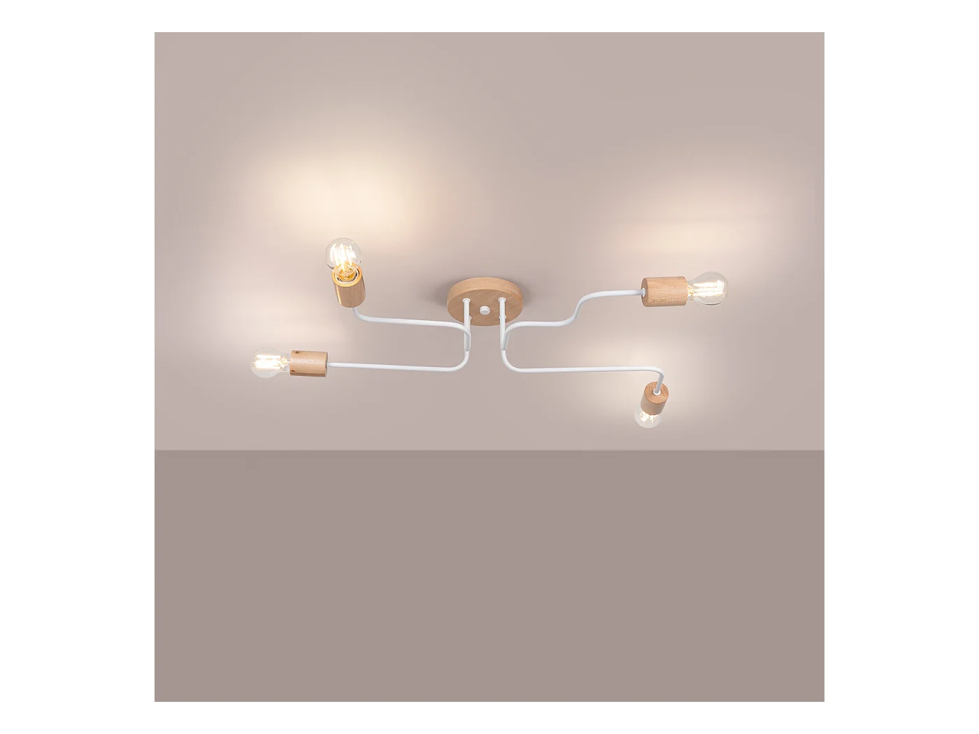 Lustre Zimbo grenier en acier/bois - 4 sources lumineuses 3000K - L.75 x H.16,5 cm - blanc/bois naturel