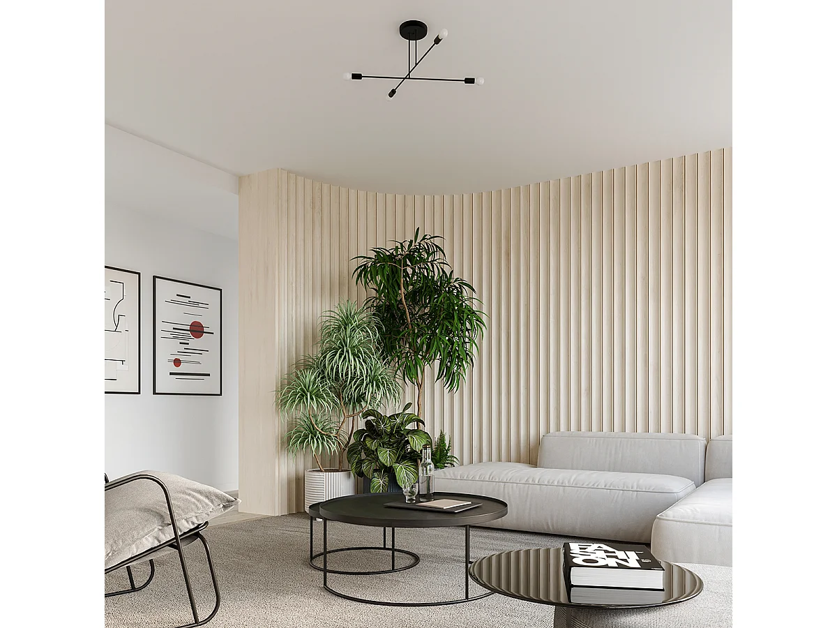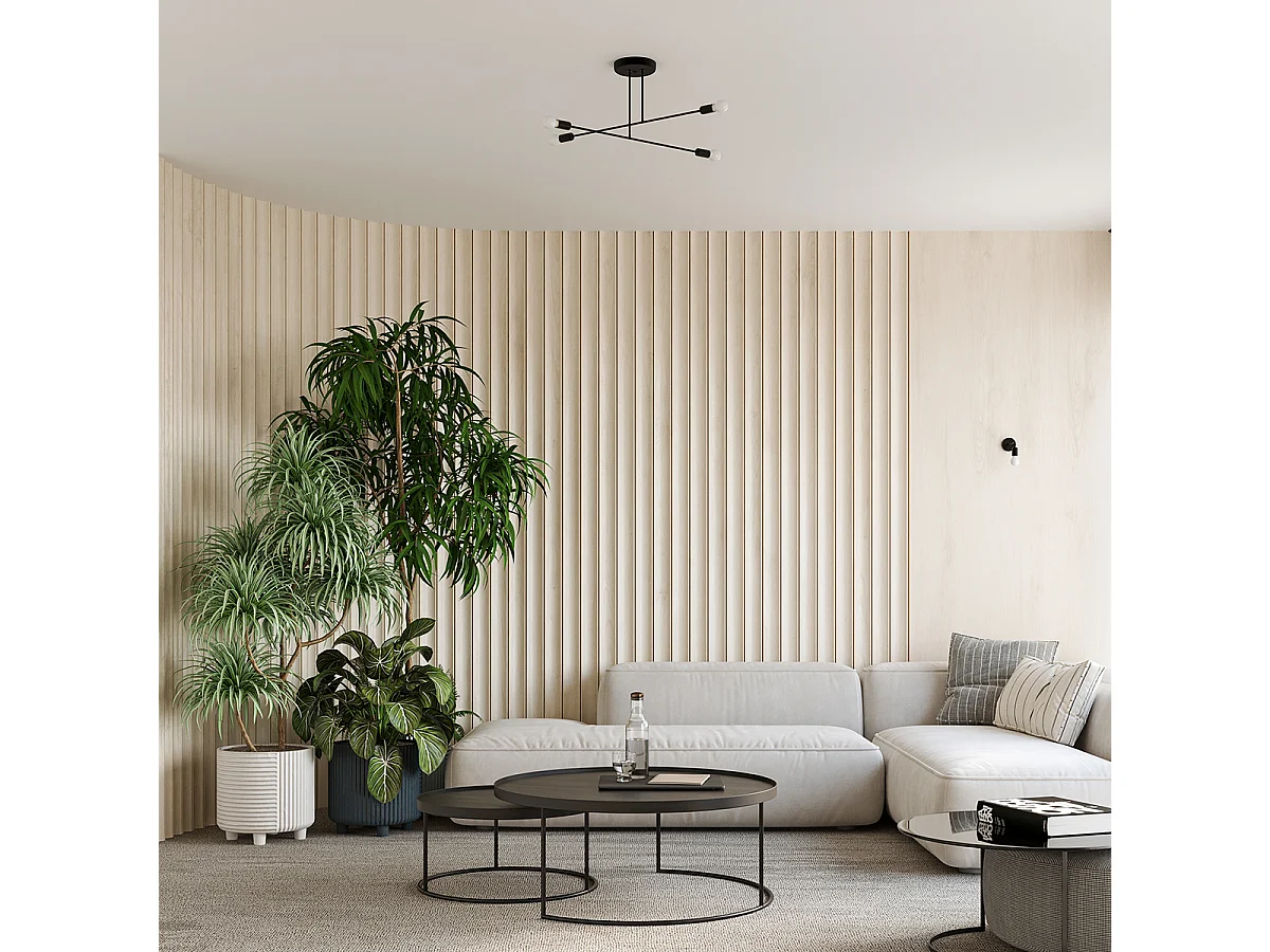 Lustre Zimbo grenier en acier/bois - 4 sources lumineuses 4000K - L.75 x H.16,5 cm - noir/bois naturel