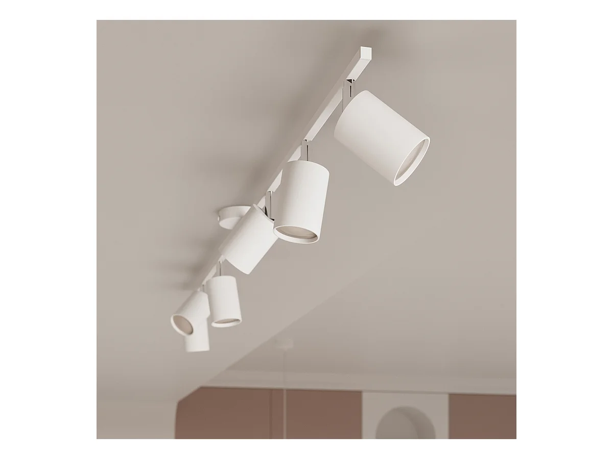 Lustres Astrona slim minimaliste en tissu/PVC/acier - 6 sources lumineuses 4000K - L.70 x H.102 cm - blanc