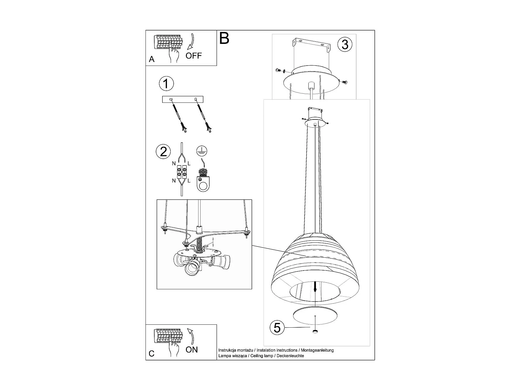 Lustres Vella moderne en tissu/verre/acier - 3 sources lumineuses 3000K - L.60 x H.138 cm - blanc