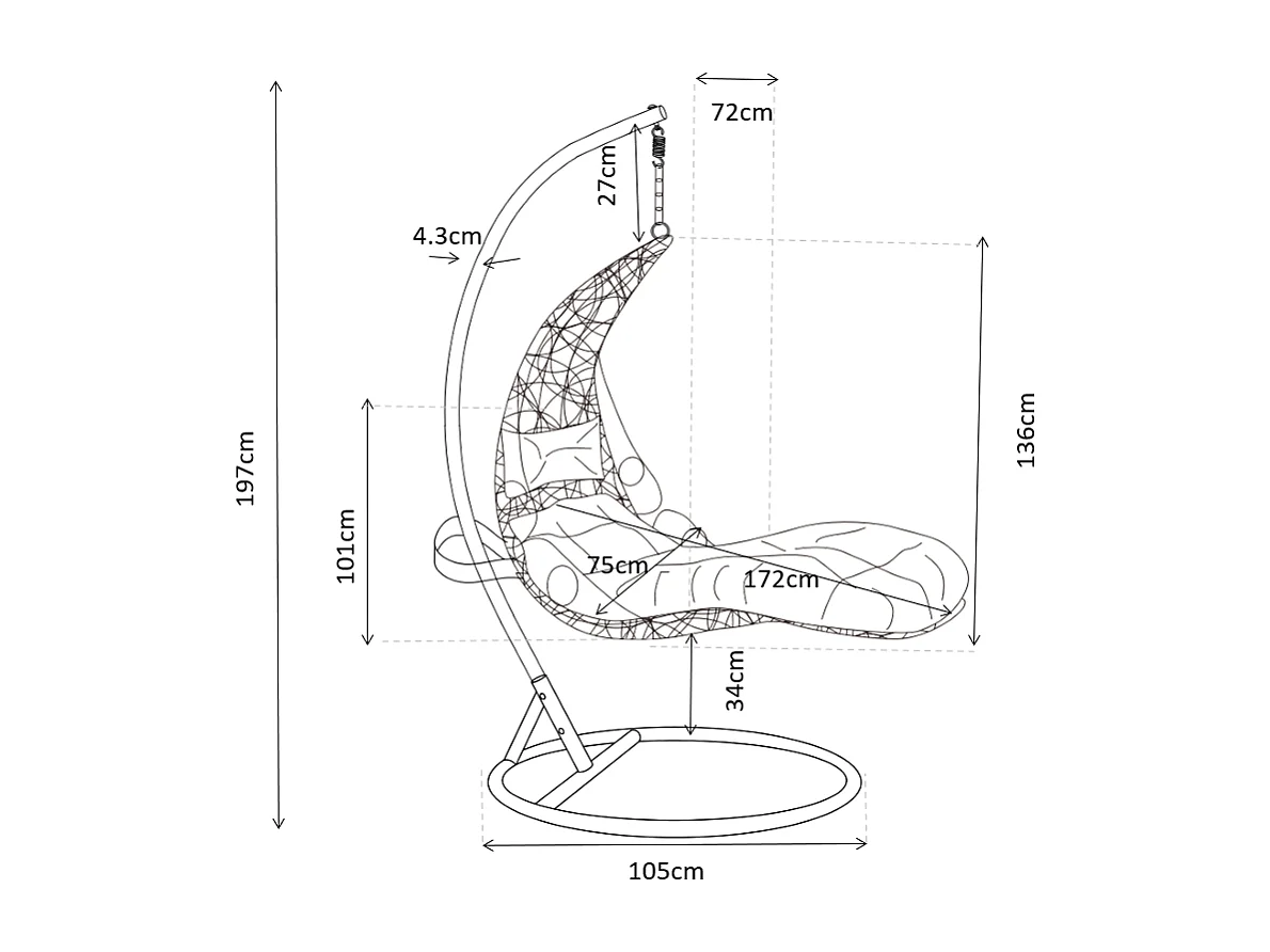 Fauteuil suspendu en résine tressée - Noir avec coussins gris - LUVA de MYLIA