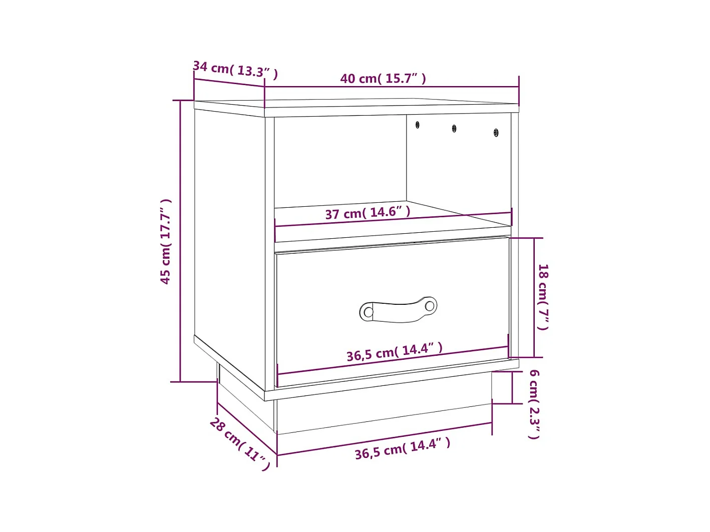 Yaldir Table de chevet Noir 40x34x55 cm Bois de pin solide