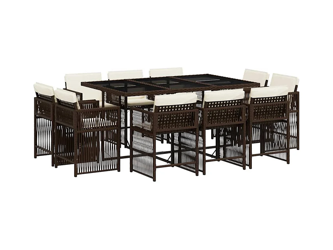 Jeroen Ensemble à manger de jardin et coussins 11 pcs marron rotin