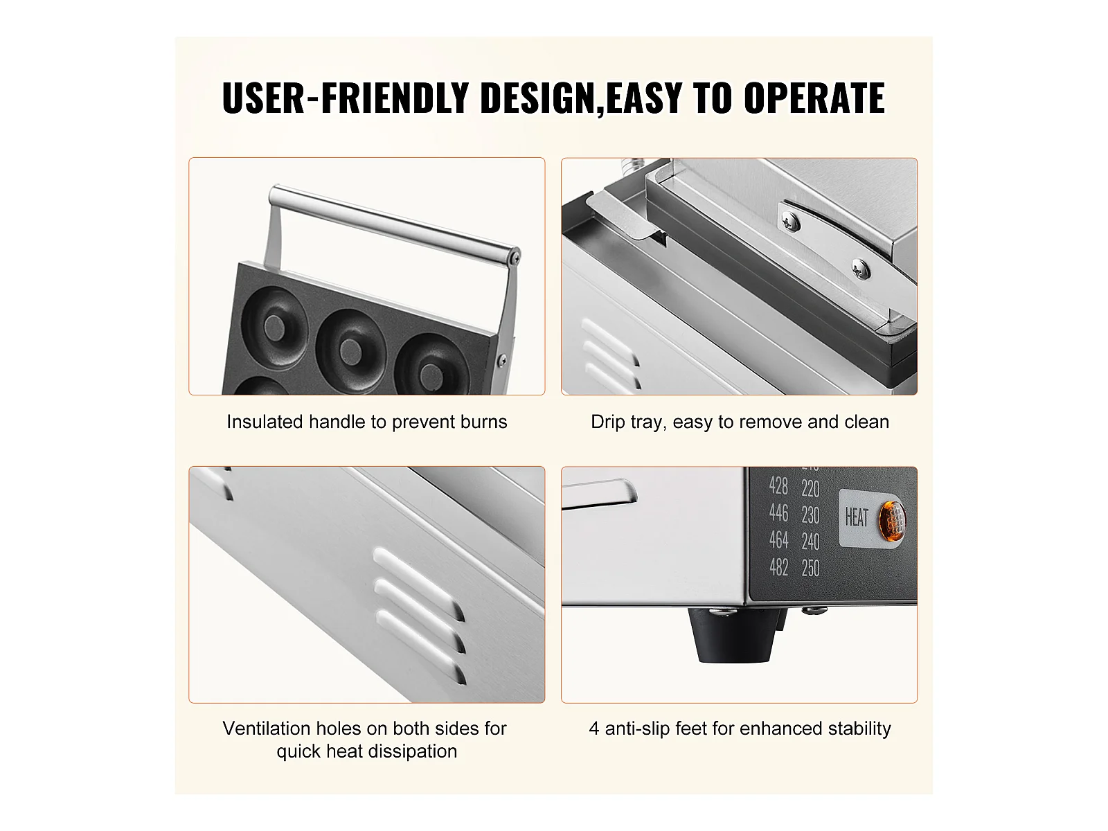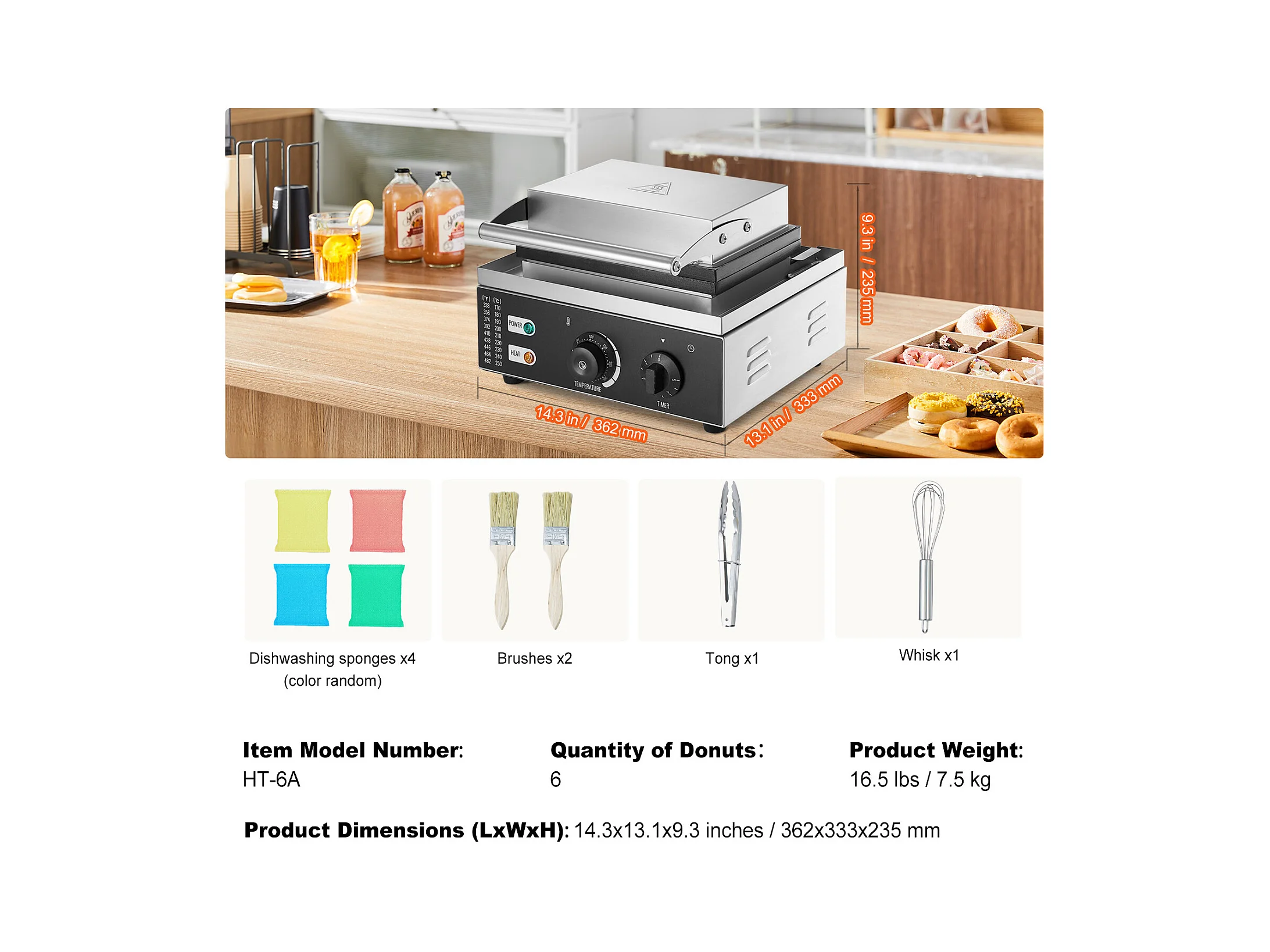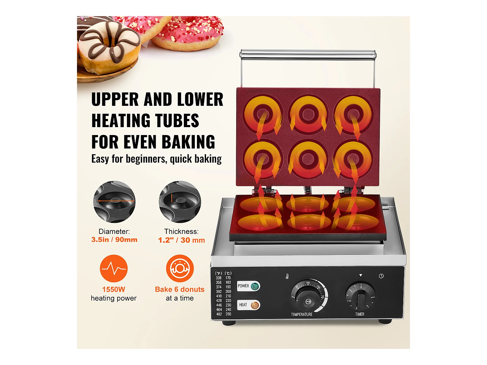 Machine à Beignets électrique Machine à Beignets Commerciale SucceBuy 6 Pièces 1550 W Antiadhésive
