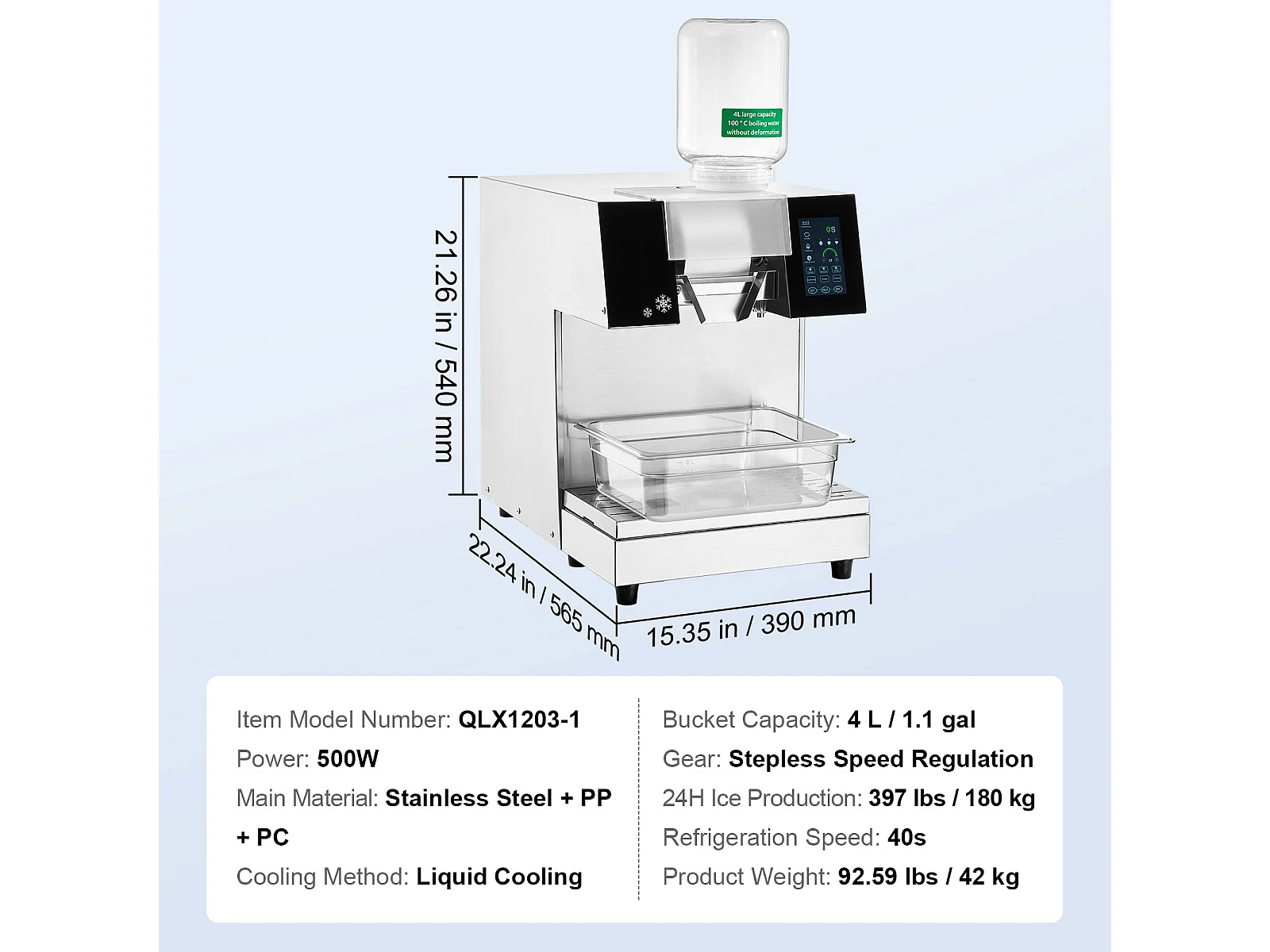 Machine à Glaçons Commerciale SucceBuy en Flocons de Neige, 230 kg/24 H en Acier Inoxydable, pour Boulangerie et Café