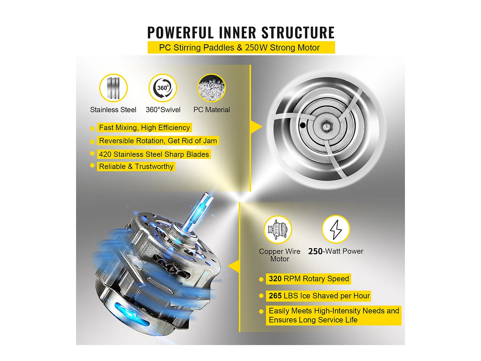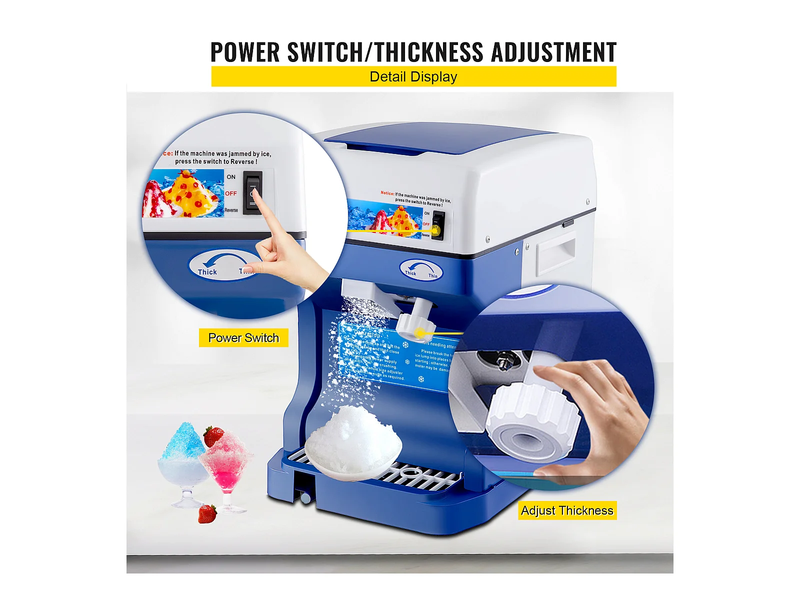 Machine à Glaçons SucceBuy Machine à Cônes de Neige 250 W 265 LBS/H Broyeur à Glace Réglable pour Usage Domestique