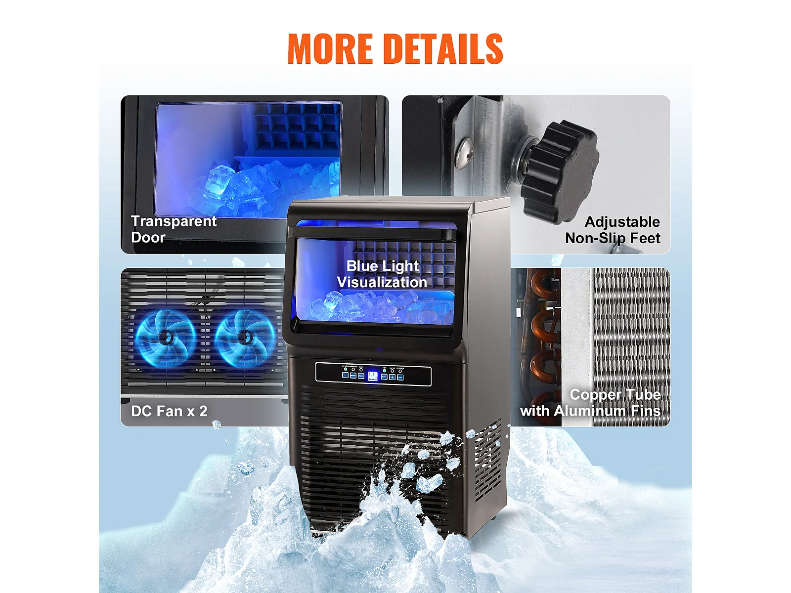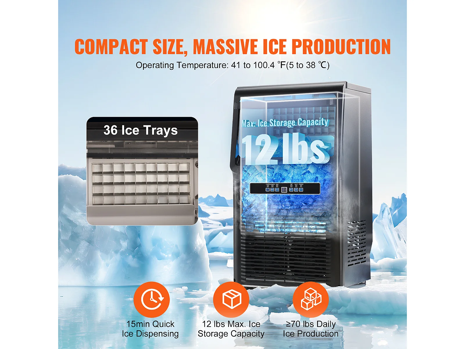 Machine à Glaçons SucceBuy Machine à Glaçons Commerciale 31.75 kg/24 h, Armoire Autonome, 36 Glaçons