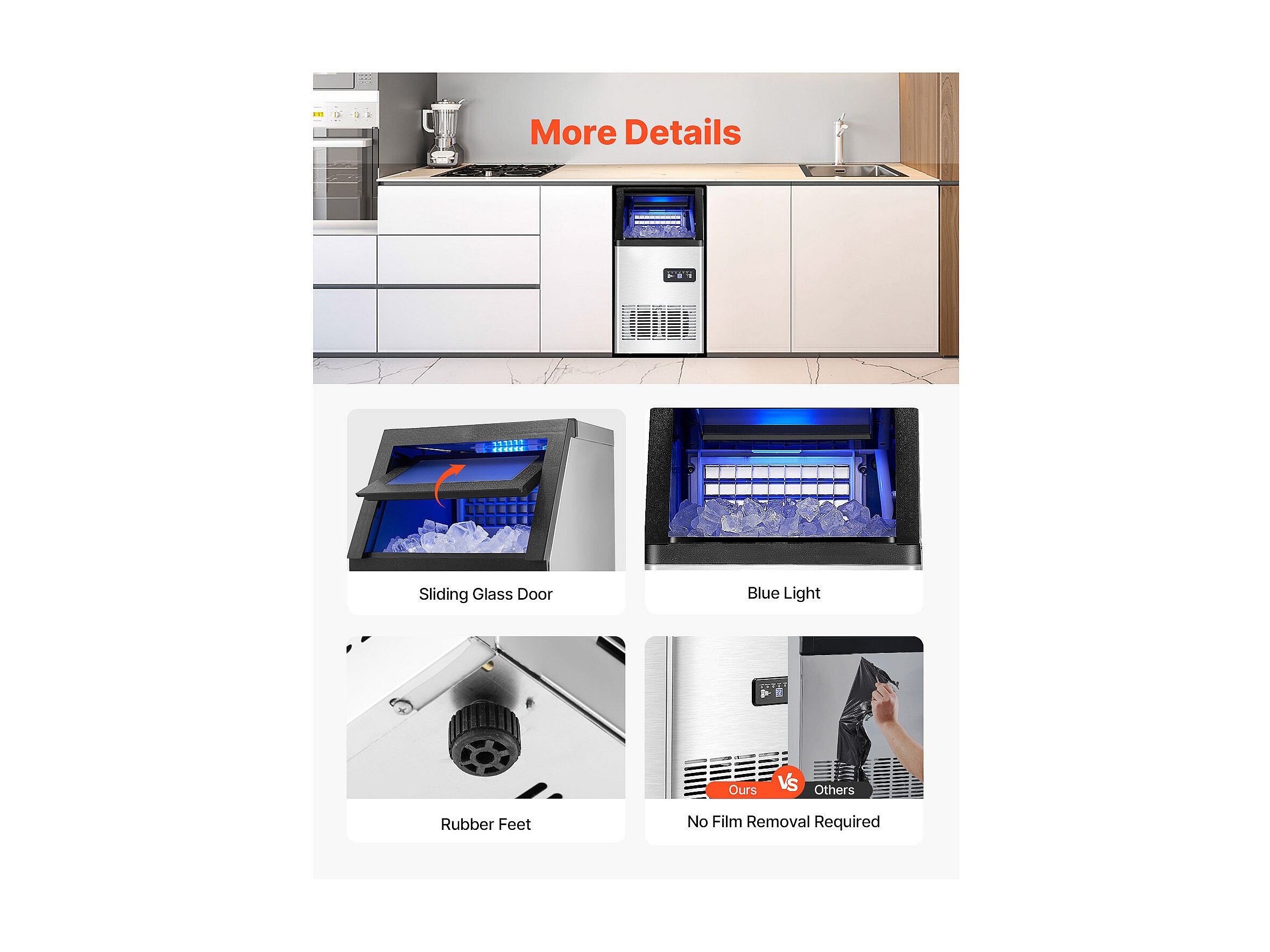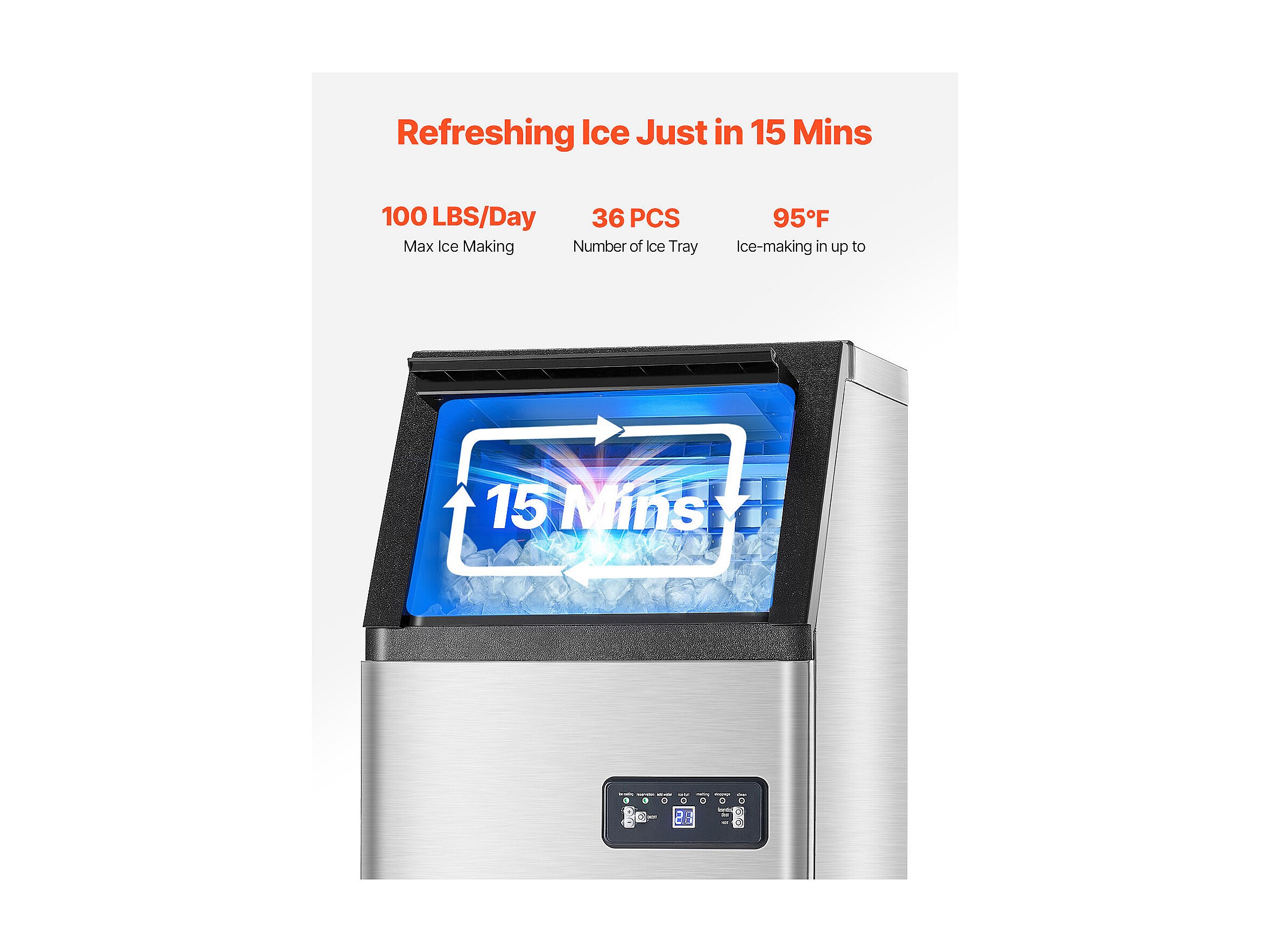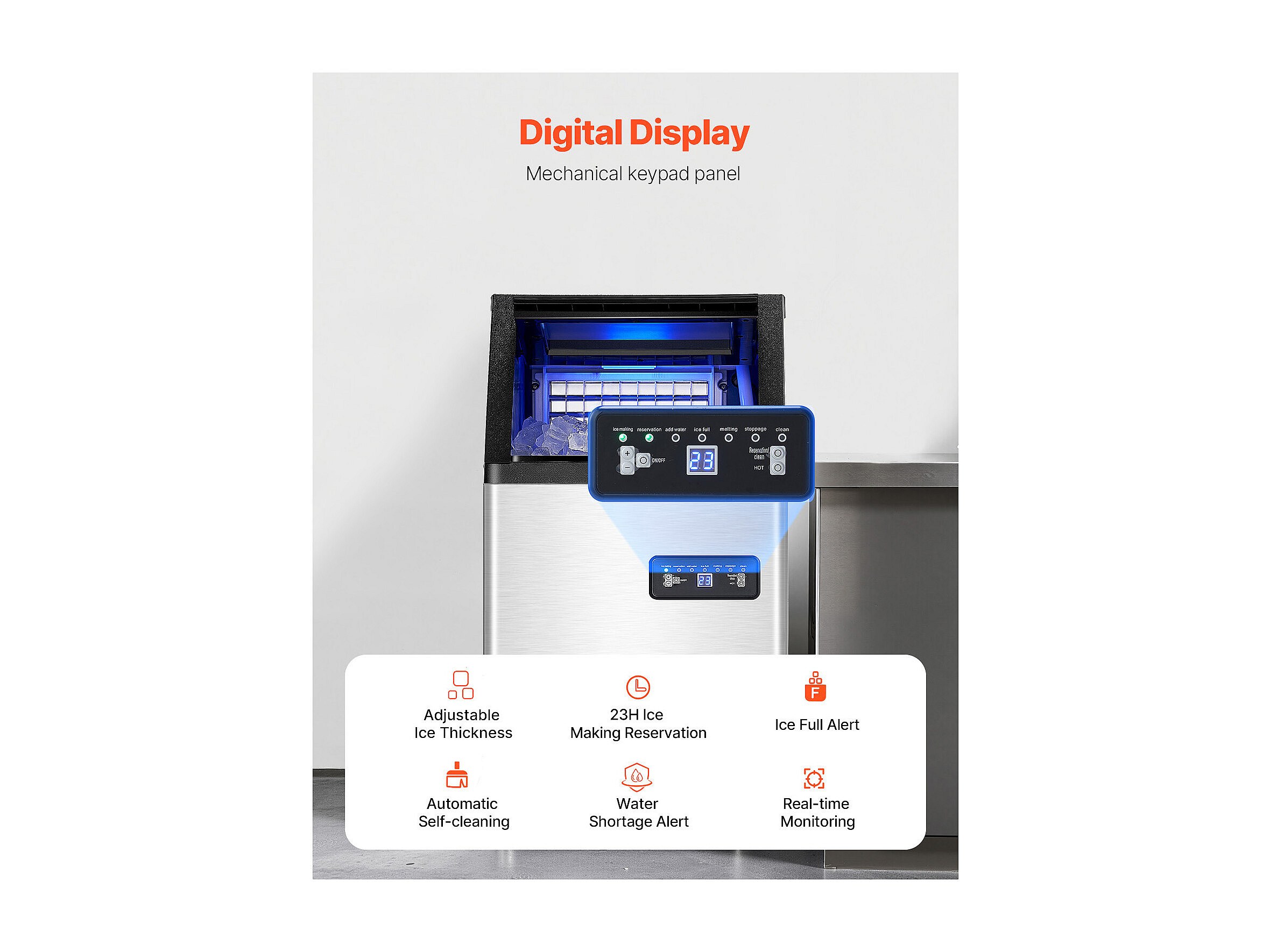 Machine à Glaçons SucceBuy Machine Commerciale de Glaçon 45.36 kg/Jour avec l'Affichage à LED pour la Gastronomie