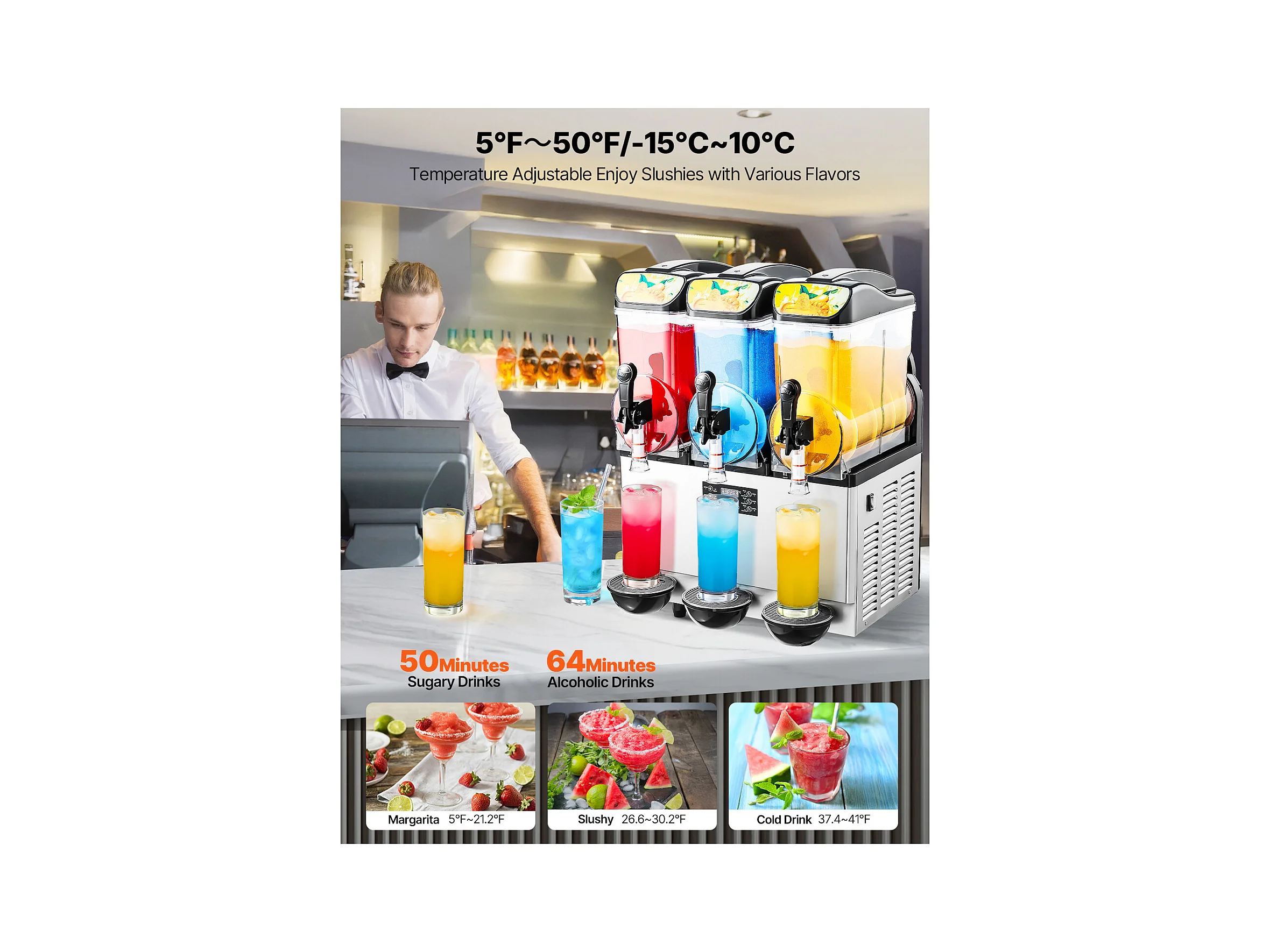 Machine à Granité SucceBuy, 3 Réservoirs de 15 L, Acier Inoxydable, Distributeur de Boissons Glacées, pour Maison, Restaurants, Cafés, Bars