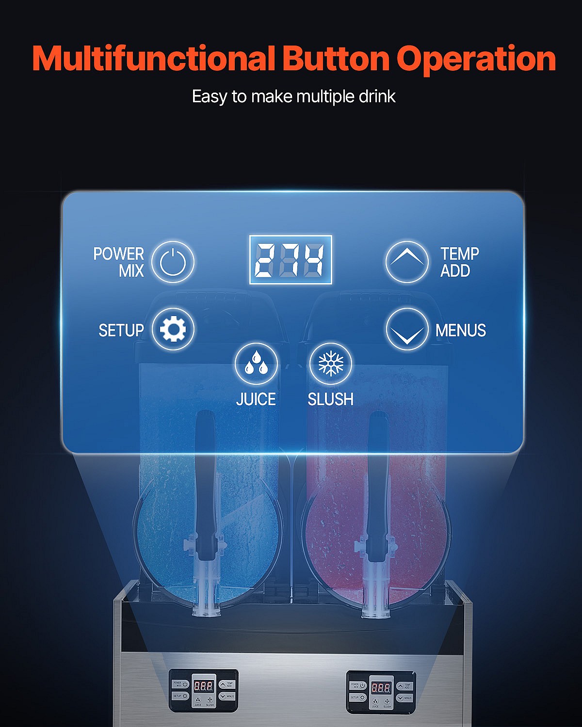 Machine à Granité SucceBuy Commerciale 2 x 12L , Machine à Smoothie Margarita, pour Supermarchés, Cafés, Restaurants, Bars