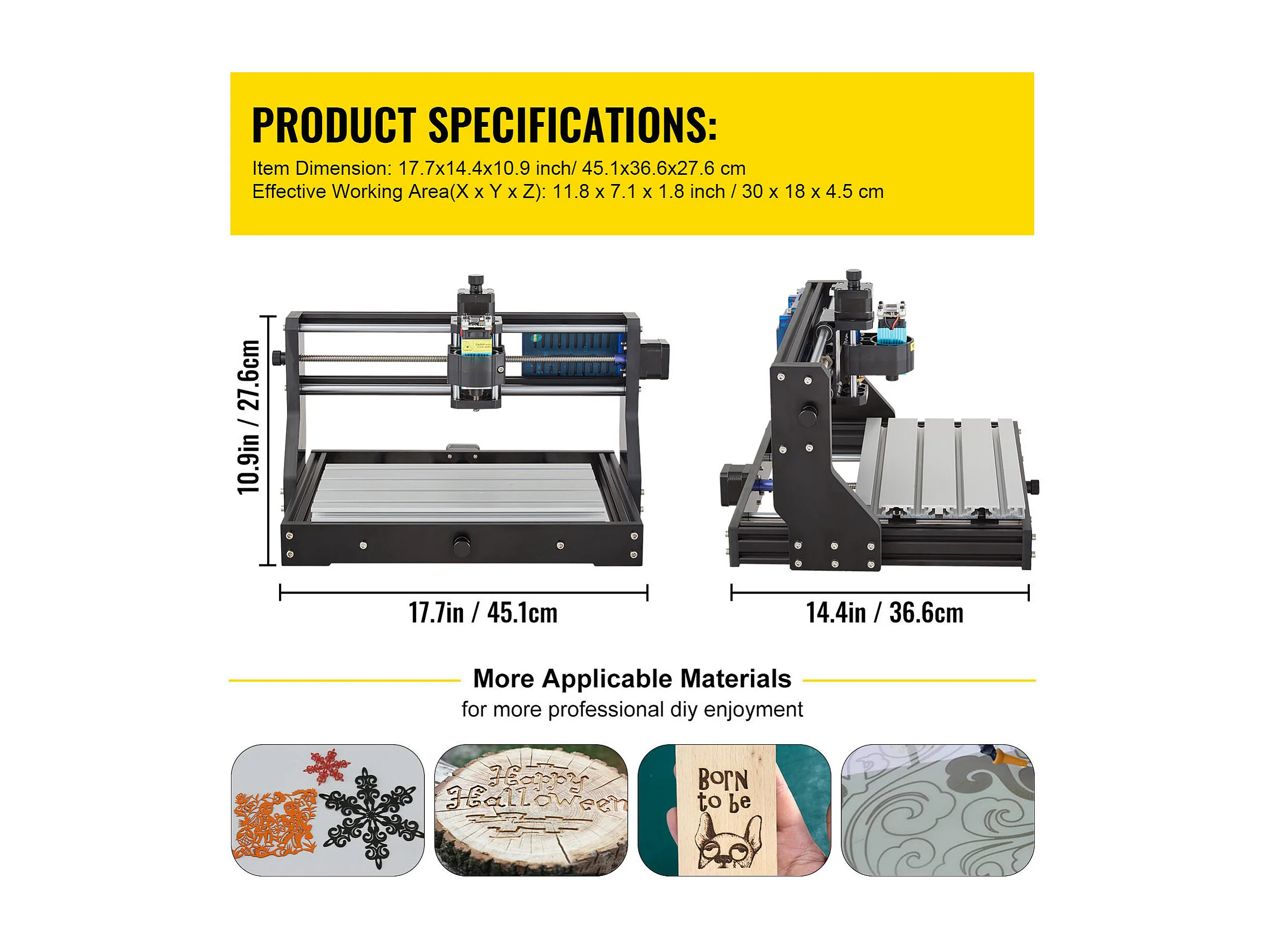 Machine à Graver, SucceBuy Machine CNC 3018 Pro, Graveur Laser 2500 mW pour Bois, Plastique, Cuir