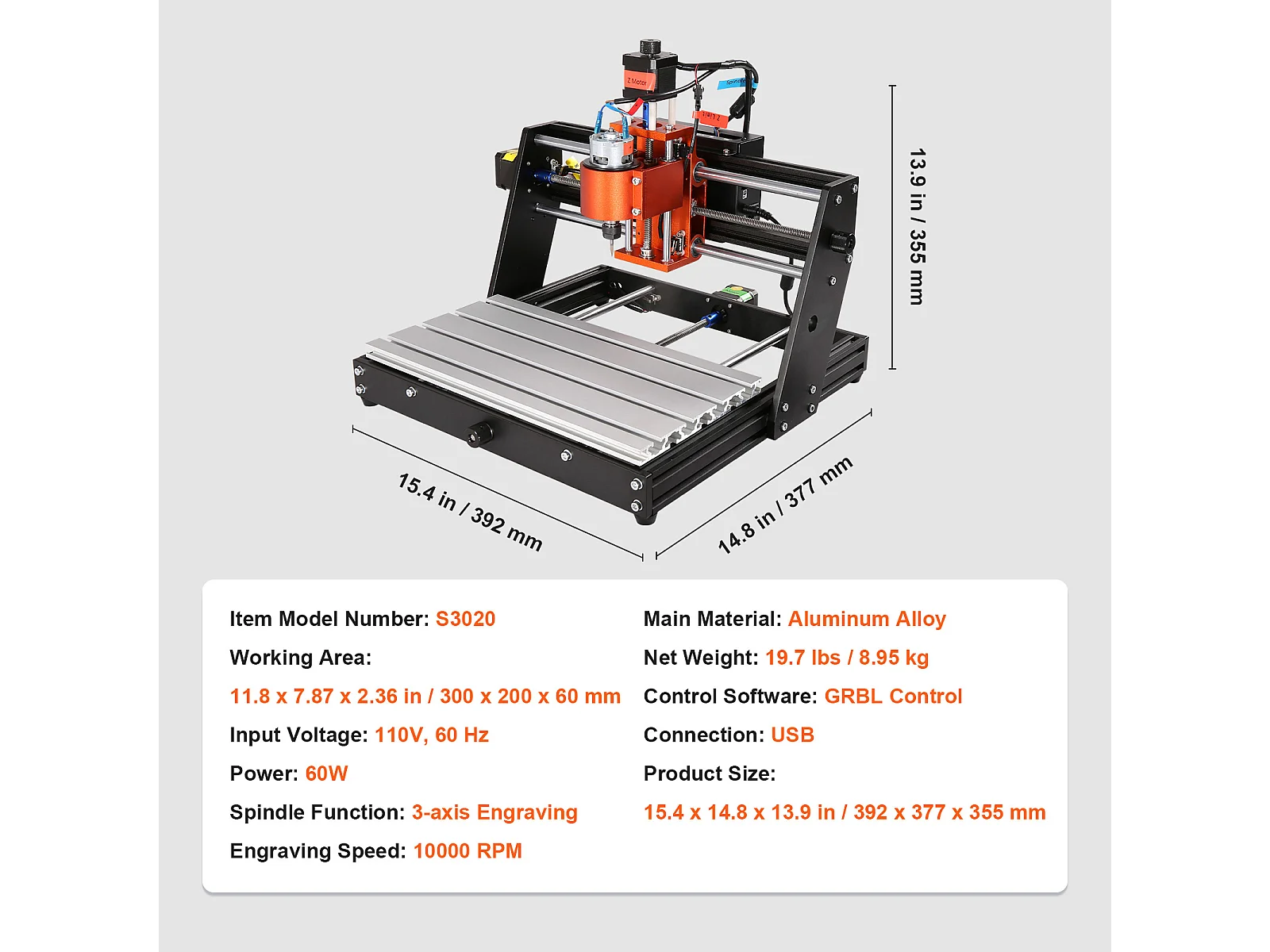 Machine à Graver, SucceBuy Machine de Routeur CNC 3 Axes 120 W, Contrôle GRBL, Gravure sur Bois