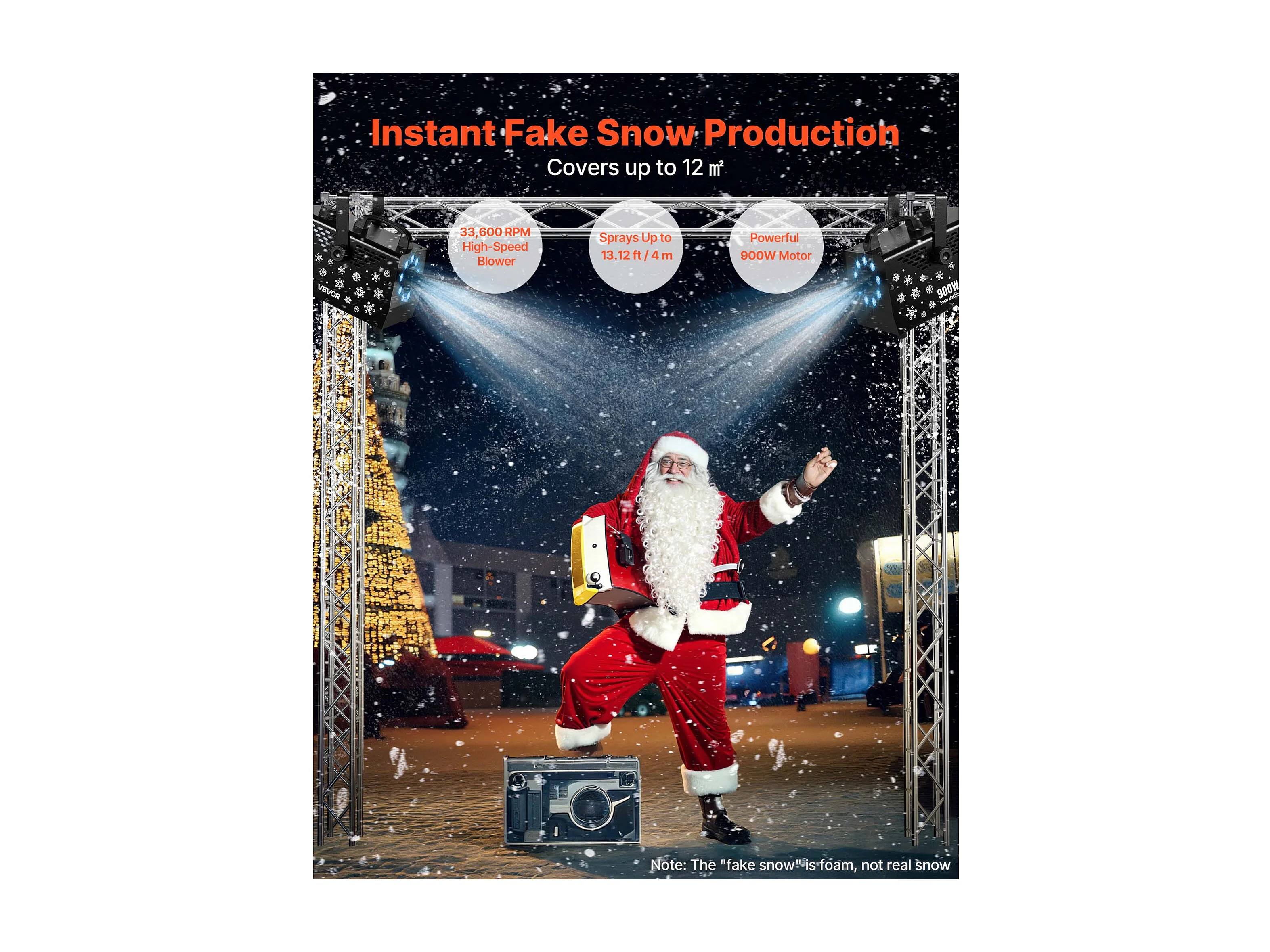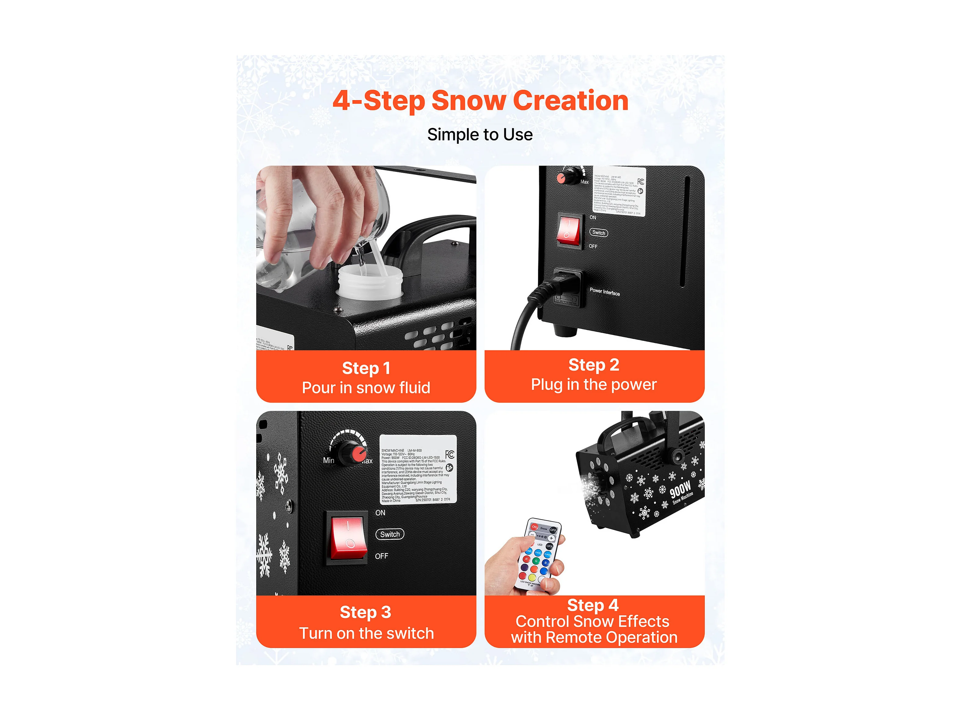 Machine à Neige SucceBuy 900 W, Machine à Flocons de Neige Artificielle Portative Suspendue, avec Lumière Ambiante, Télécommande sans Fil, Réservoir 1 L