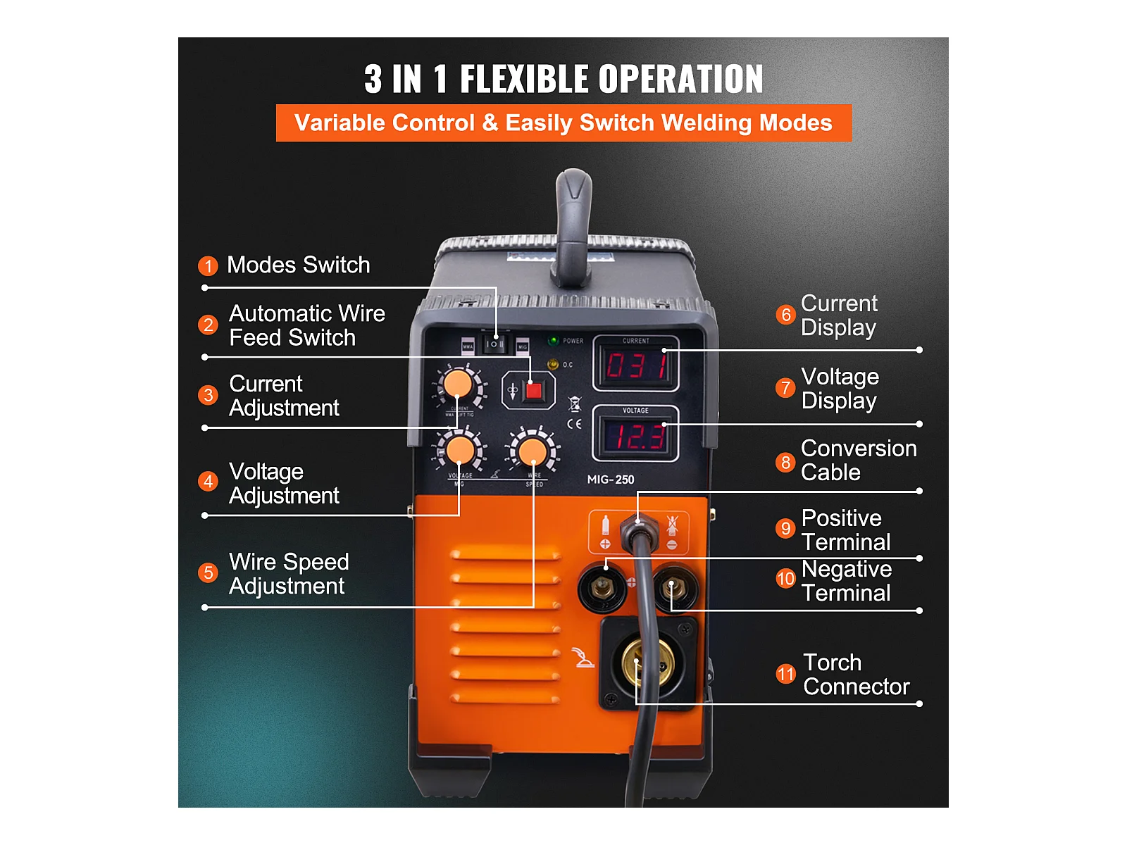 Machine à Souder MIG SucceBuy 250A 3 en 1 Machine à souder 220 V TIG MMA Stick IGBT DC Inverter Soudeur Affichage Numérique