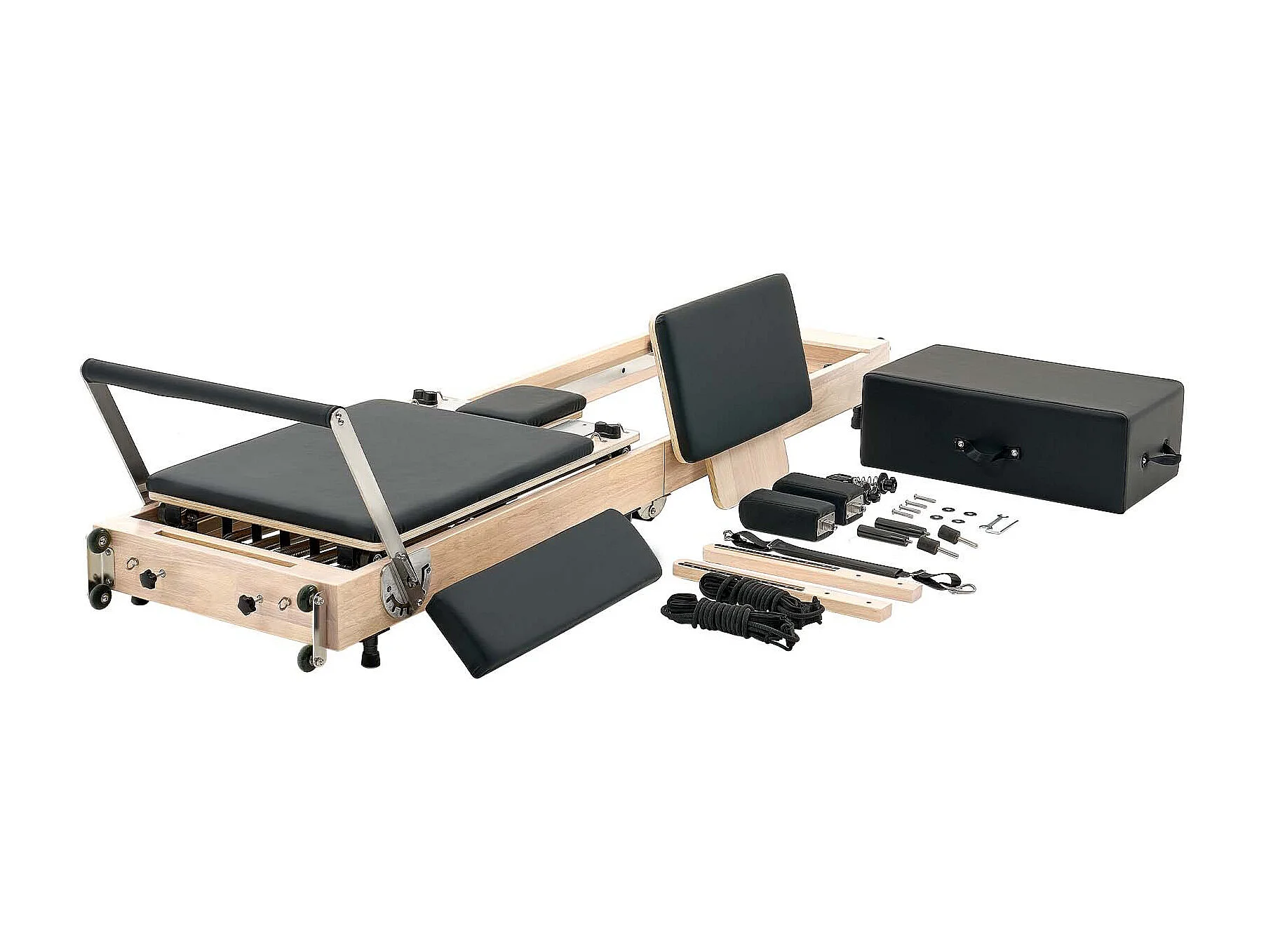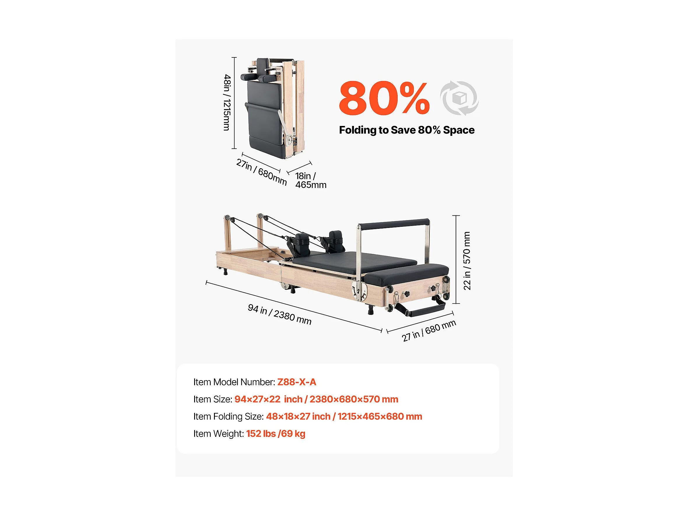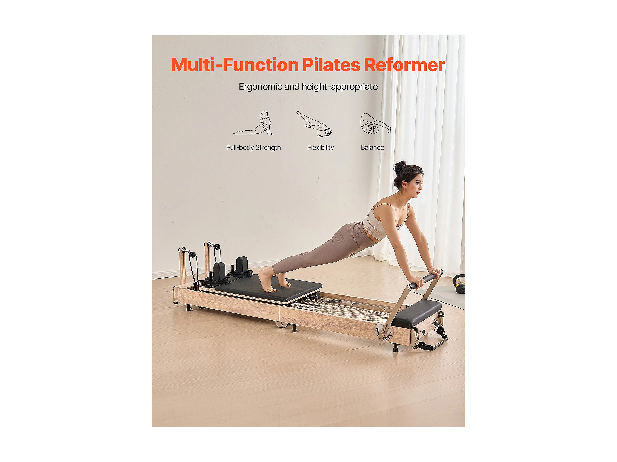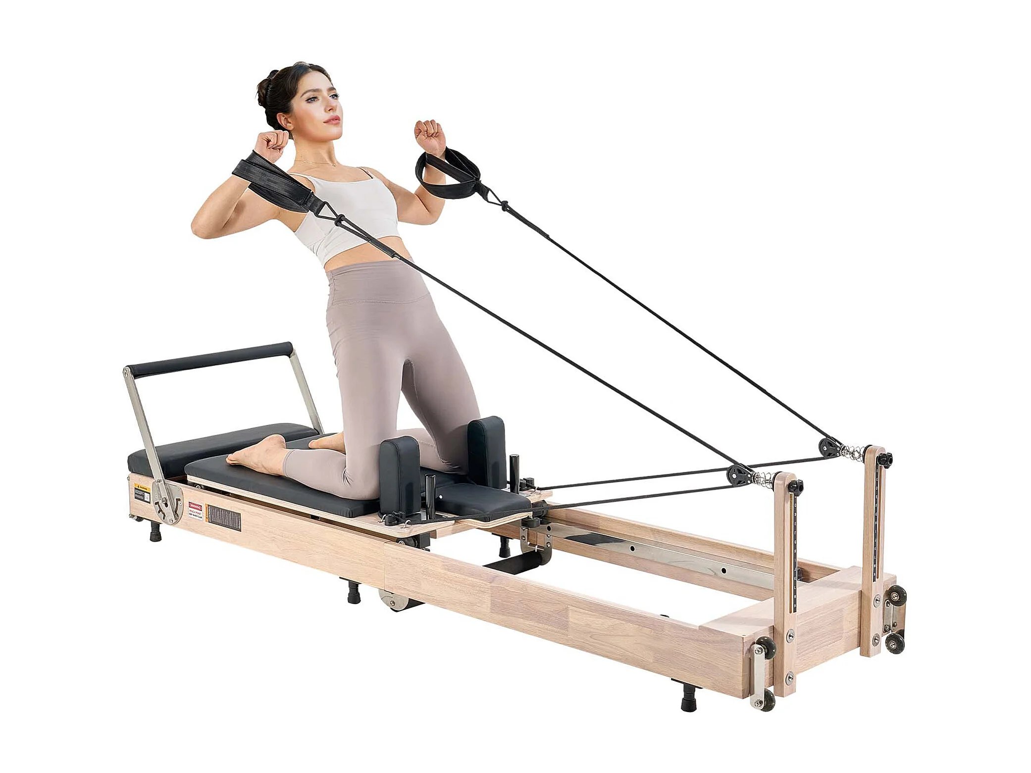 Machine de Pilates SucceBuy Réformateur Pilates Pliable en Bois Machine d'Entraînement de Yoga Gym