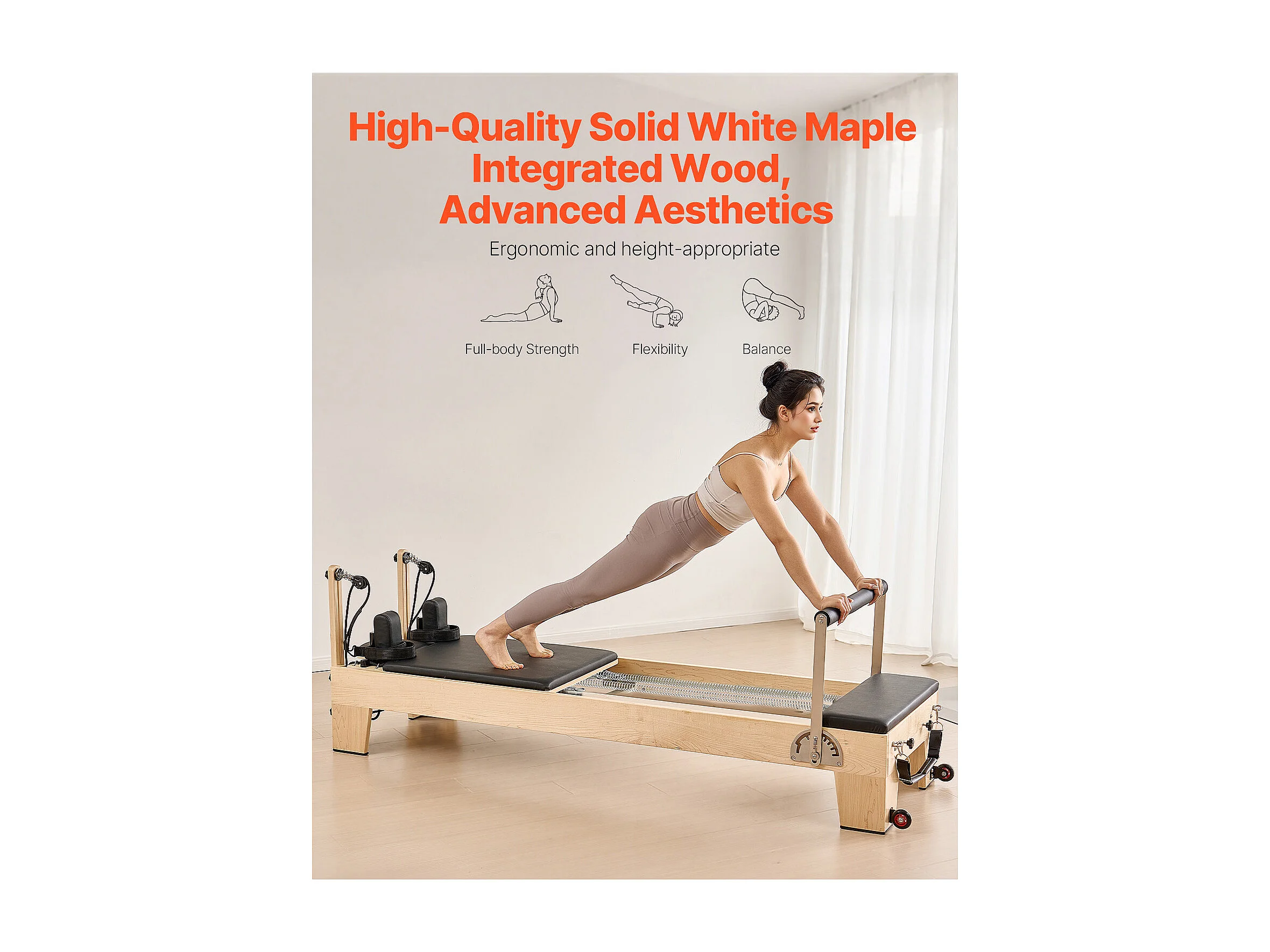 Machine de Pilates SucceBuy Reformer Pilates Machine de Pilates en Bois avec Résistance Domicile Gym