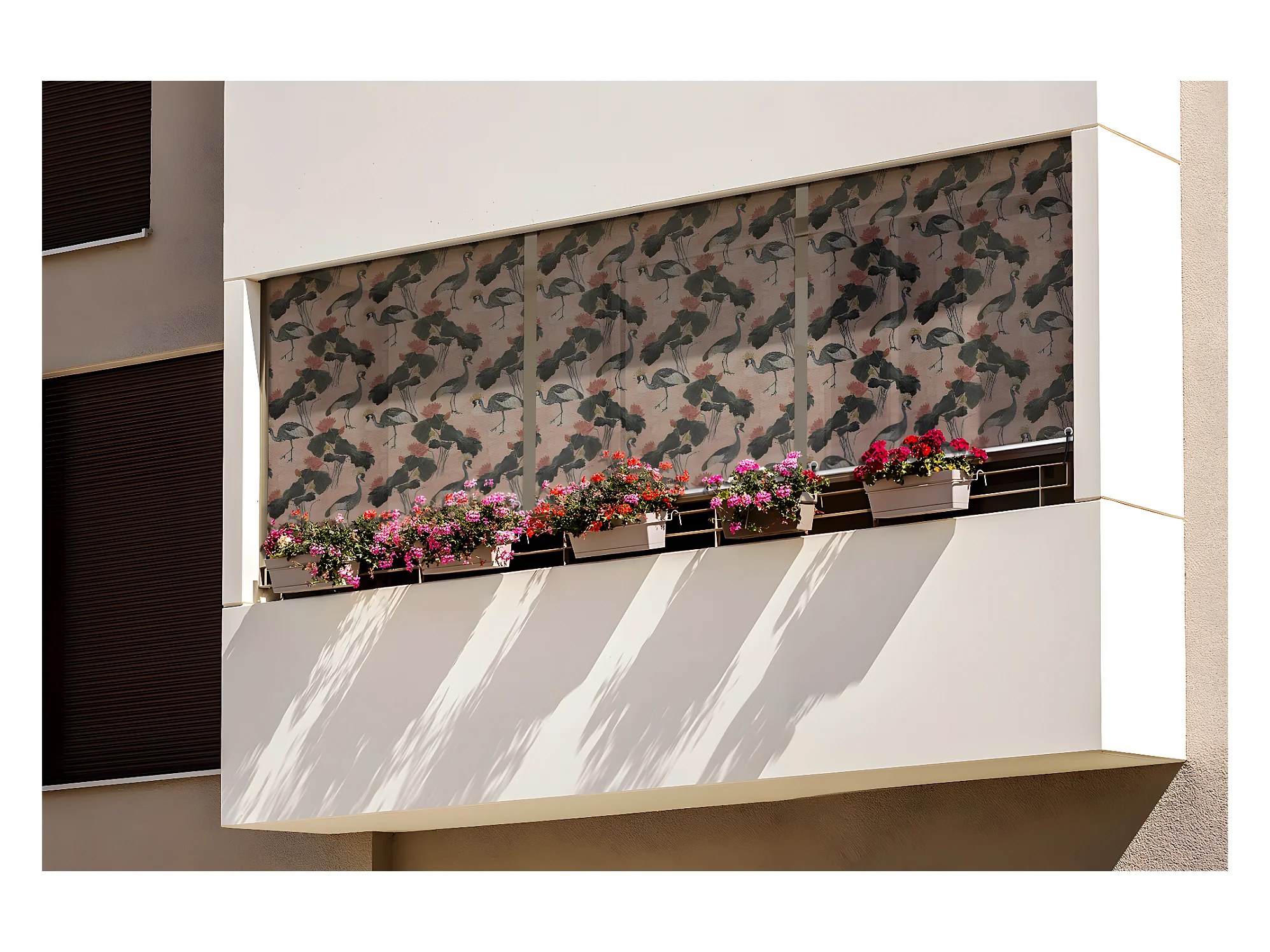 Magnifique store enrouleur extérieur - 40x180 cm - Grues et fleurs de lotus Rideau de balcon, Stores enrouleurs de balcon, Rideau pare-soleil