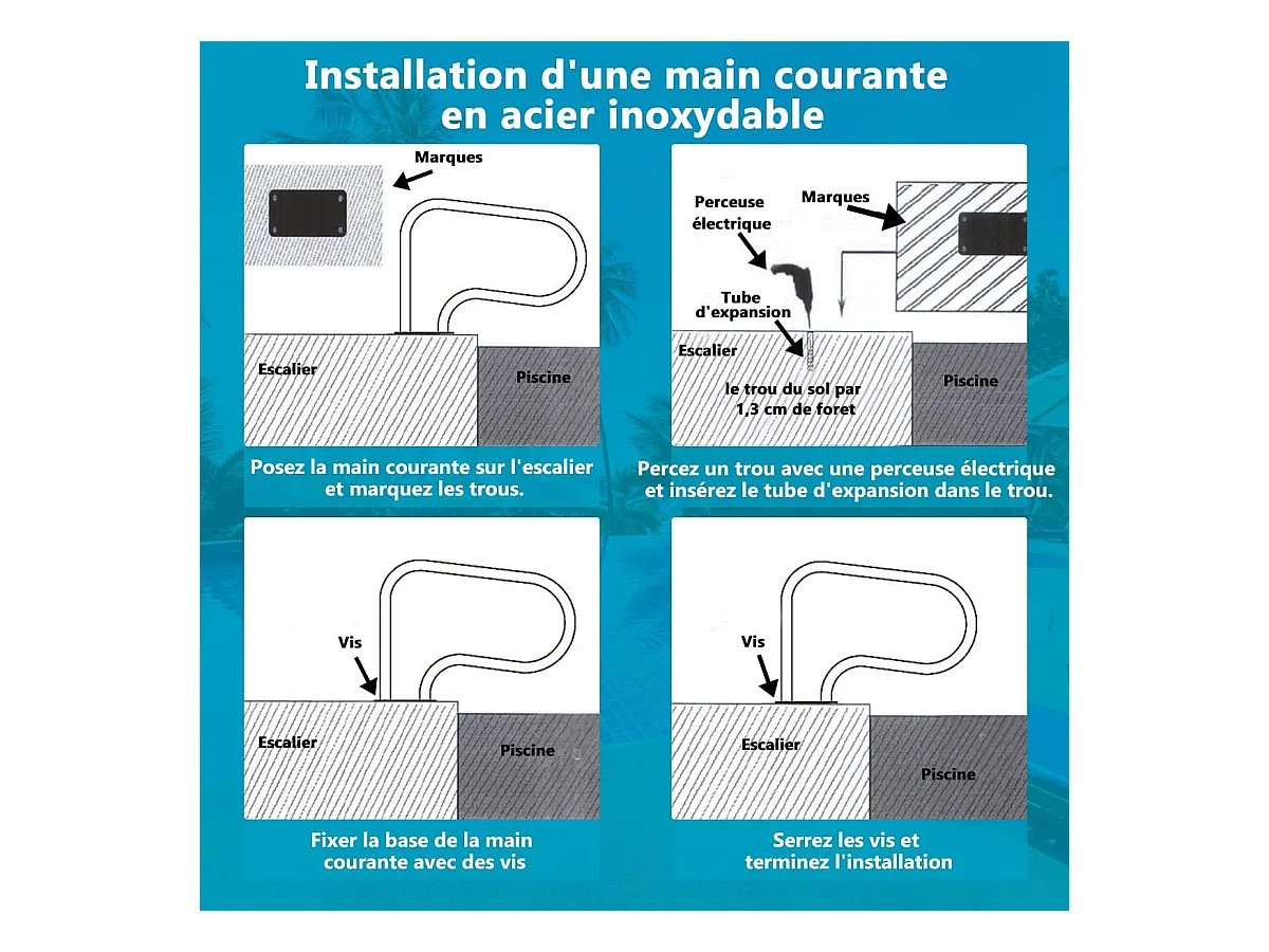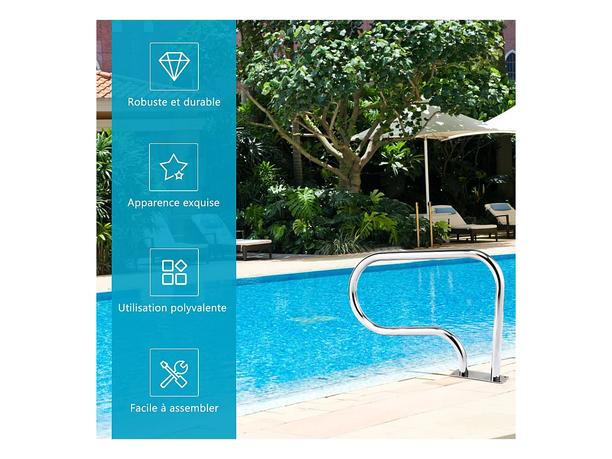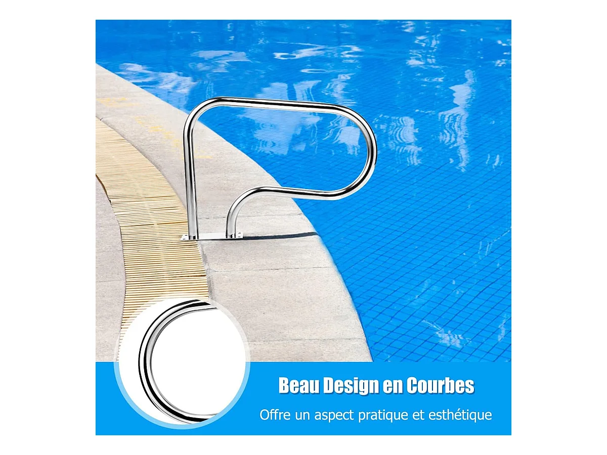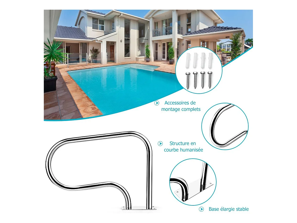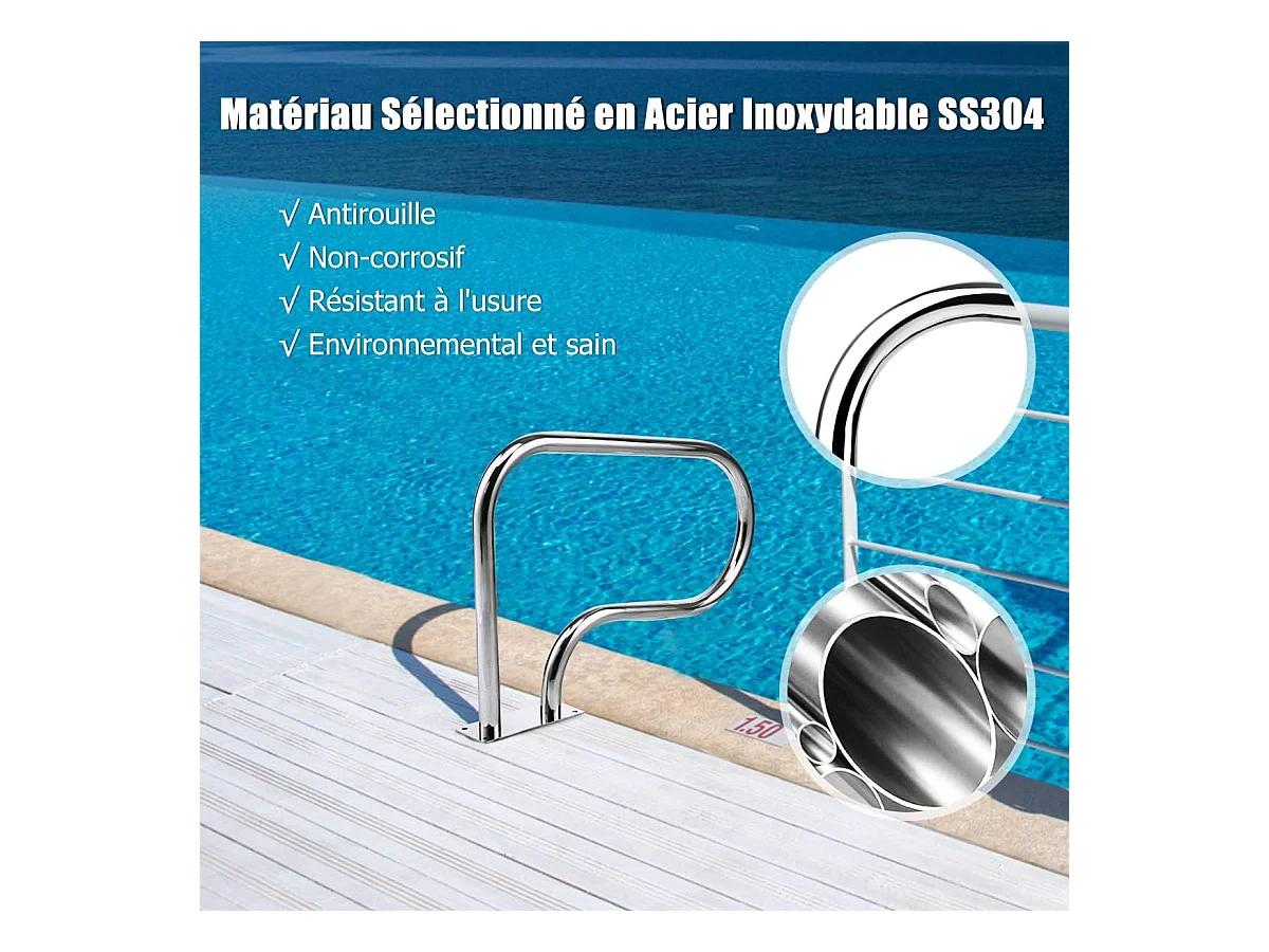 Main Courante de Piscine en Acier INOX, Rampe d'Escalier de Piscine avec Plaque de Base pour Stade, Parc Aquatique