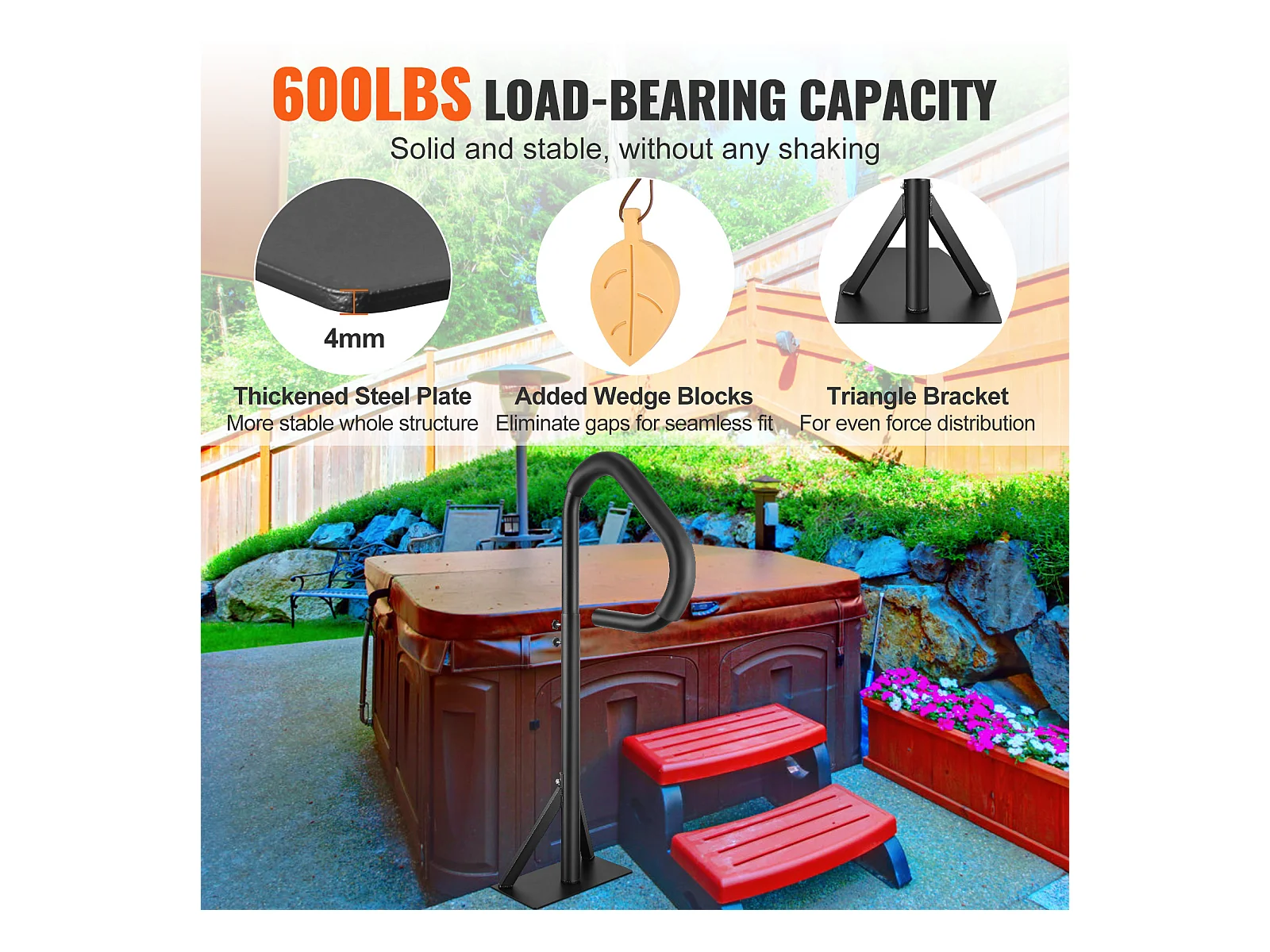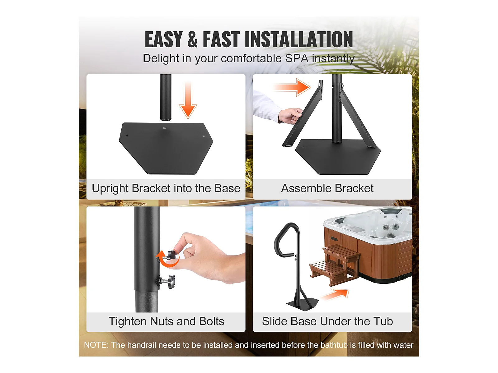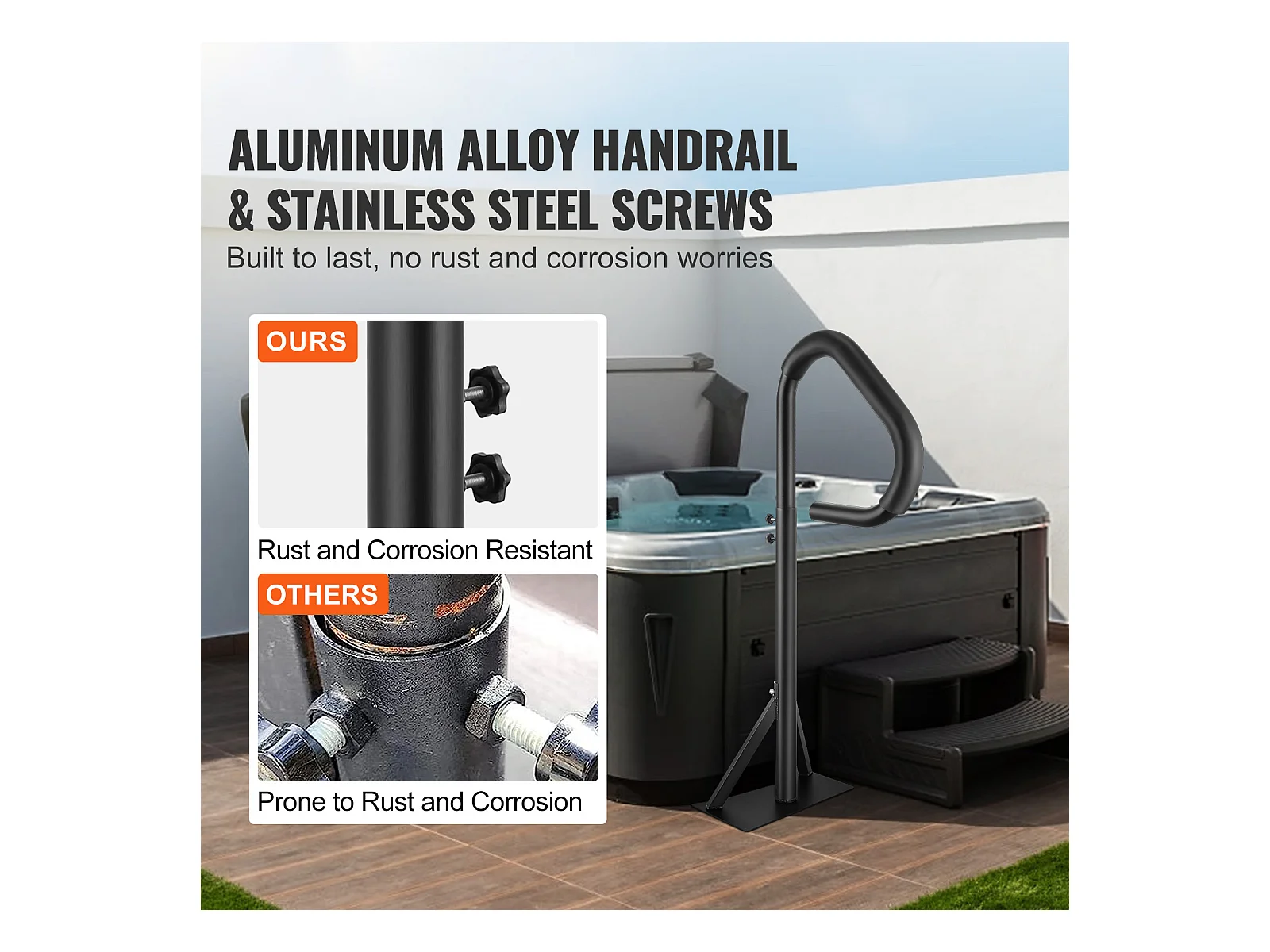Main Courante de Piscine, SucceBuy Rampe de Bain à Remous Rotative à 360°, Hauteur Réglable de 89 à 144.7 cm