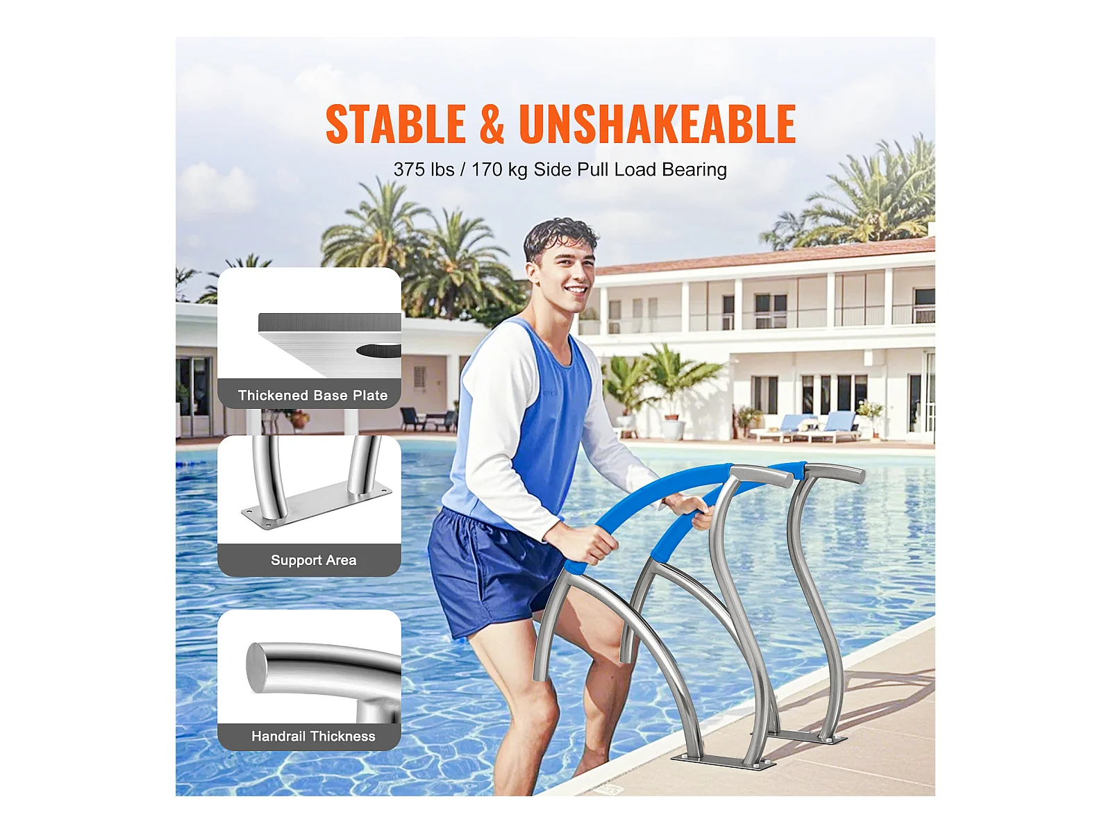 Rampe de Piscine SucceBuy 30 x 22 po en Acier Inoxydable avec Revêtement Antidérapant