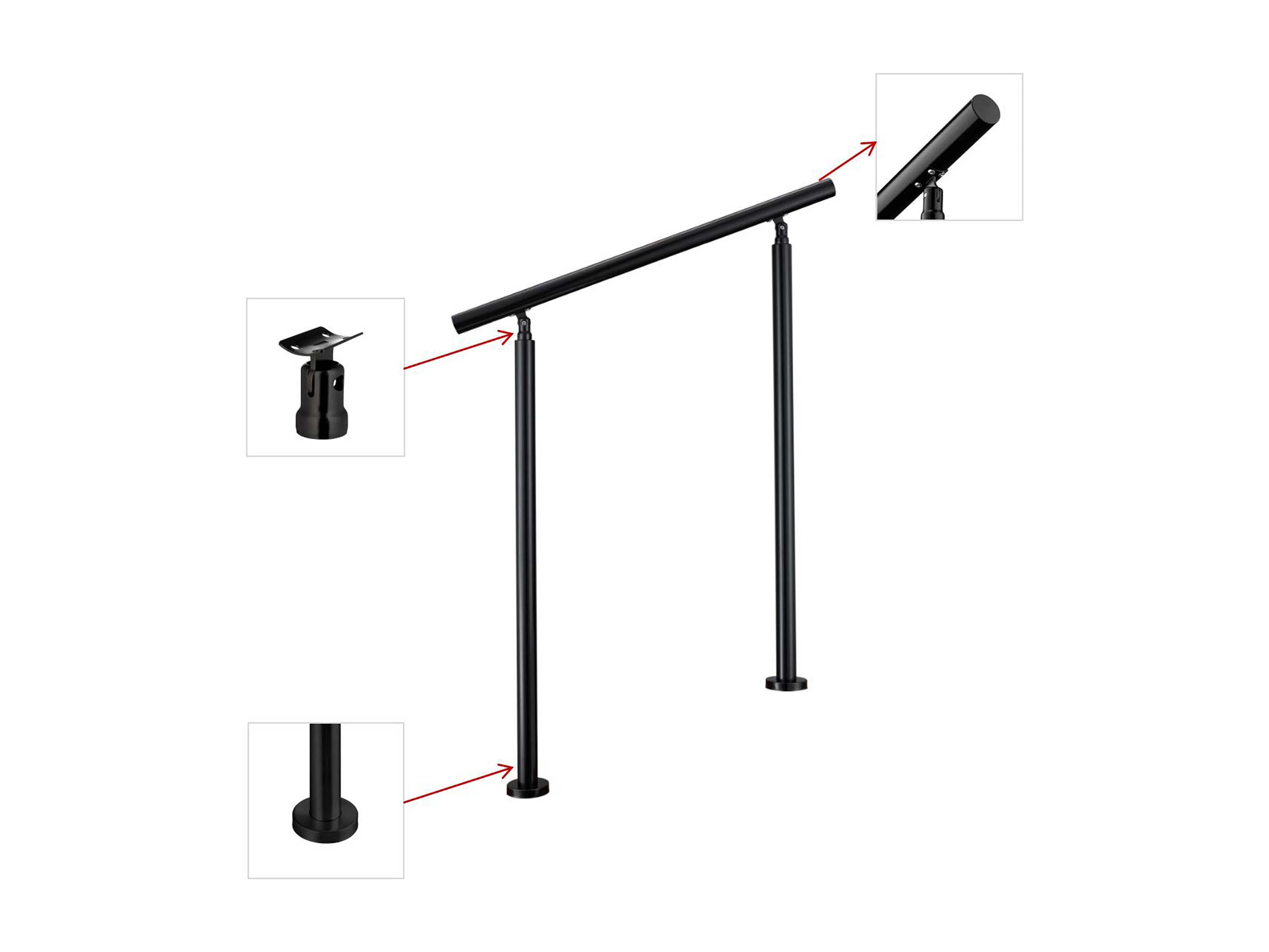 Main Courante Garde-Corps Noir mat 1.2m en Acier Inox 201 - Installation verticale - Pour Escaliers ou Rampes - Usage Intérieur/Extérieur