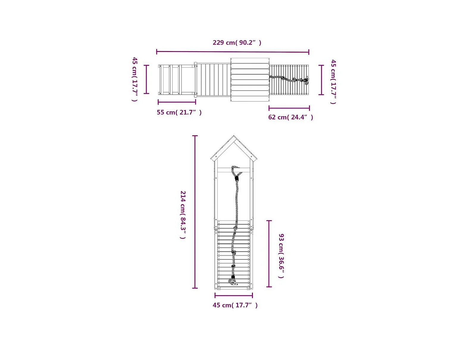 Maisonnette de jeu avec mur d'escalade bois de pin imprégné