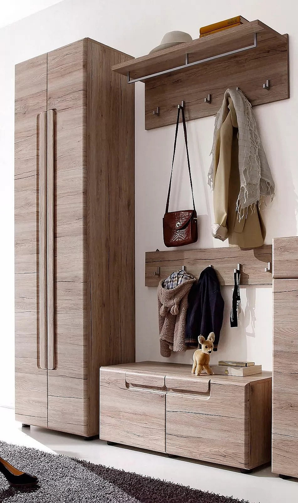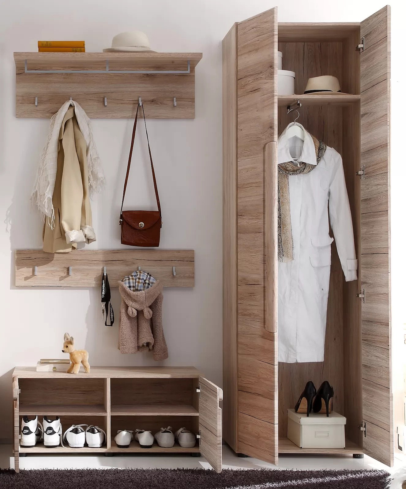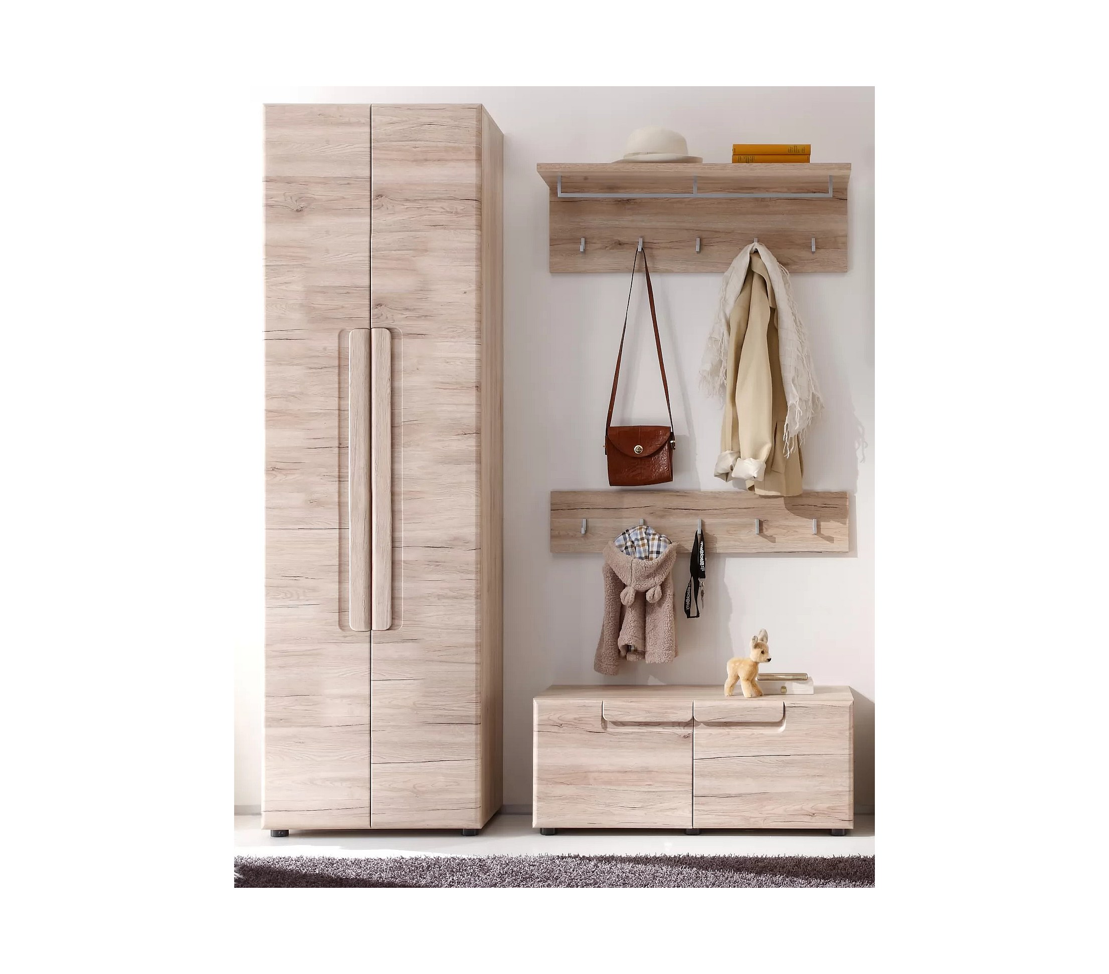Ensemble meuble d'entrée 4 pièces mélaminé chêne clair Aurel