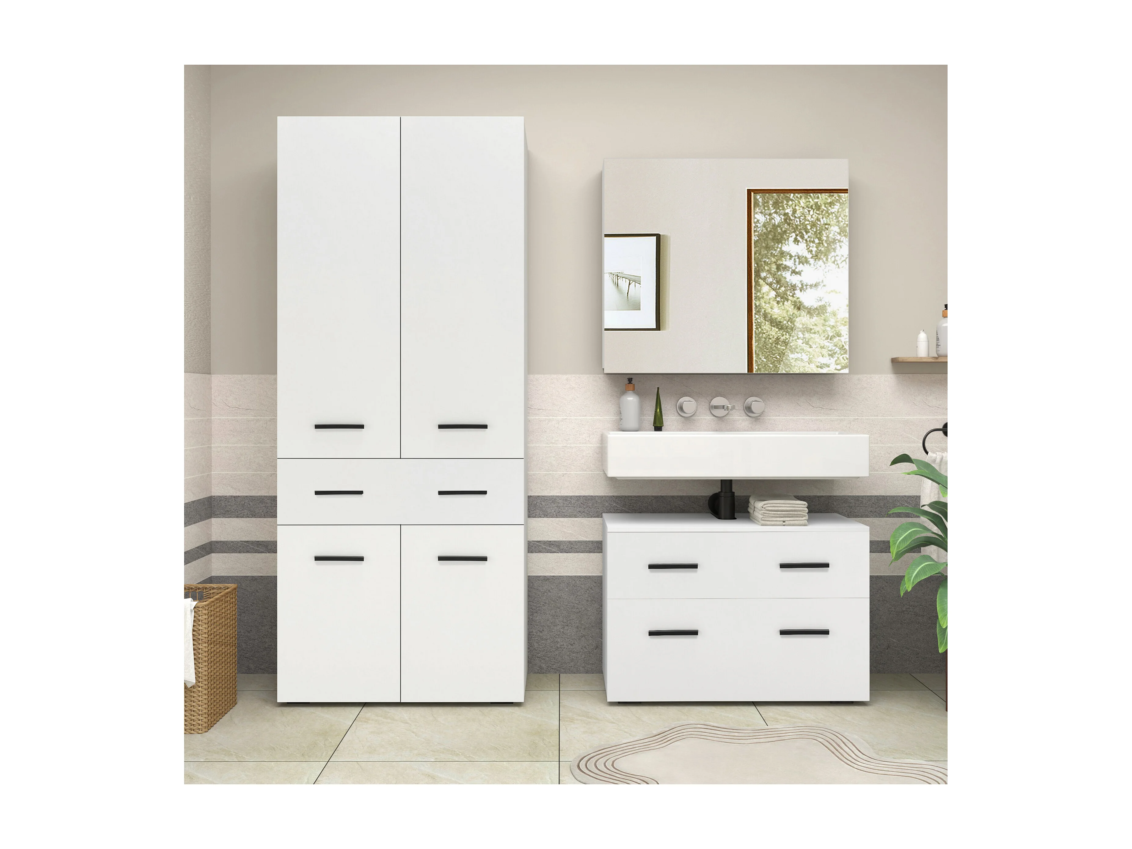 Malika | Meuble de salle de bain avec 4 portes 1 tiroir aspect bois blanc