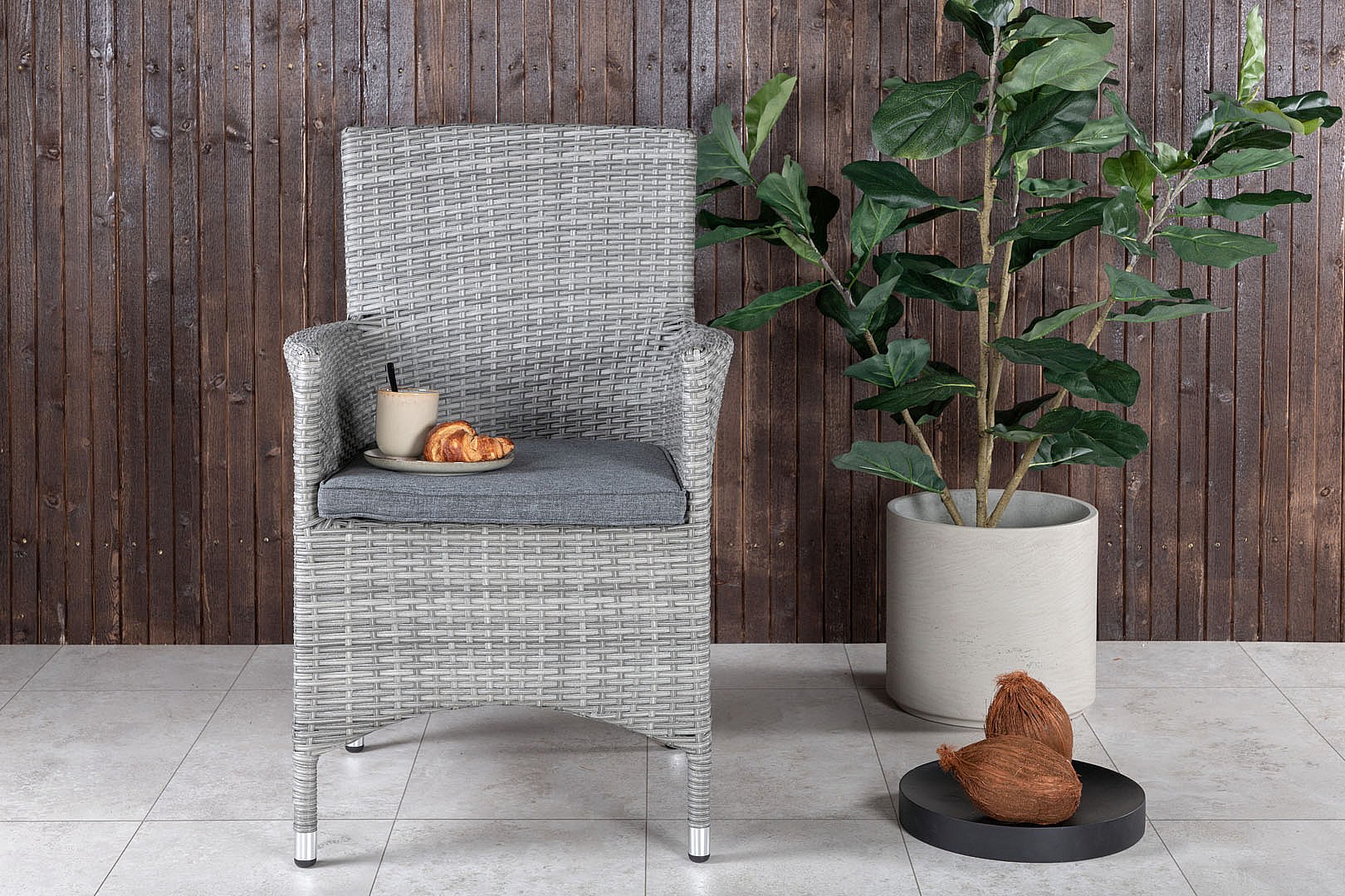 Padova Chaise de jardin avec accoudoirs, coussins inclus, réglable, blanc, gris.