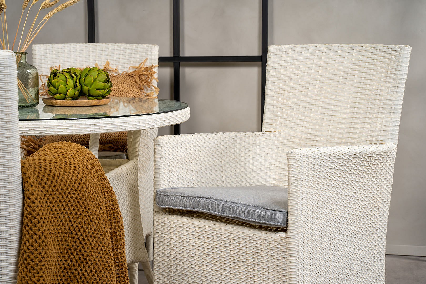 Malin Chaise de jardin avec accoudoirs, support d'assise inclus, empilable, blanc.