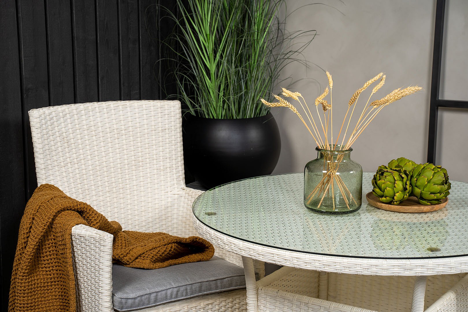 Fauteuil de jardin en rotin blanc avec coussin Marty