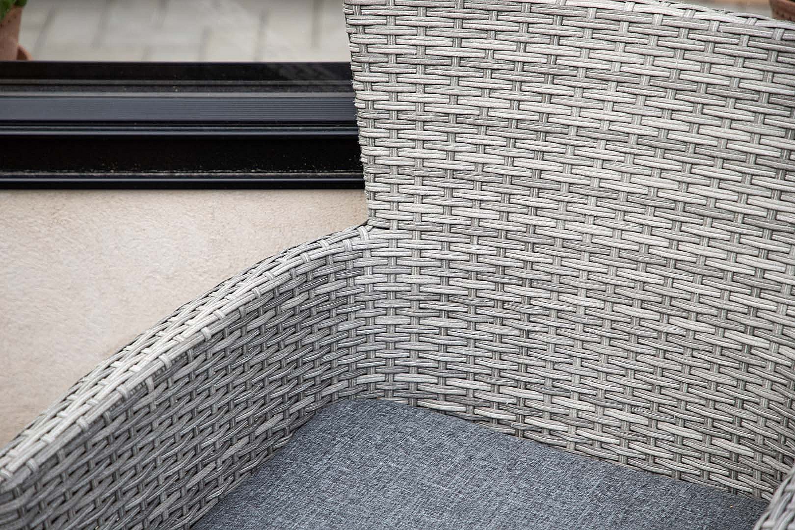 Malina chaise de jardin avec coussin de jardin gris.