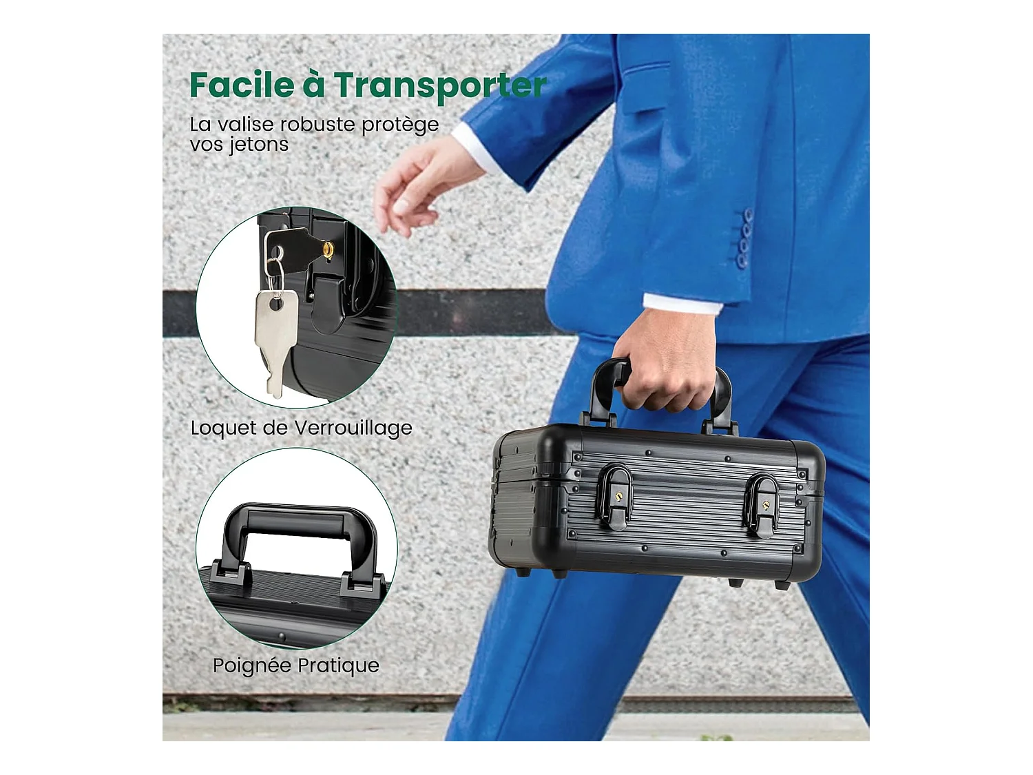 Mallette de Poker en Aluminium avec 400 Jetons & 2 Jeux de Cartes & 5 Dés, Coffret de Poker Verrouillable avec 1 Dealer & Tapis en Feutre & 2 Clés