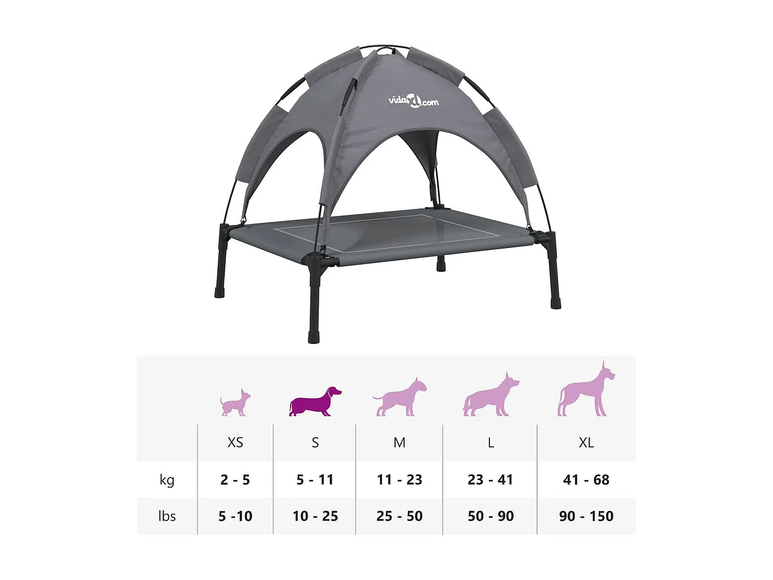 Lit pour chien avec auvent anthracite tissu Oxford et acier