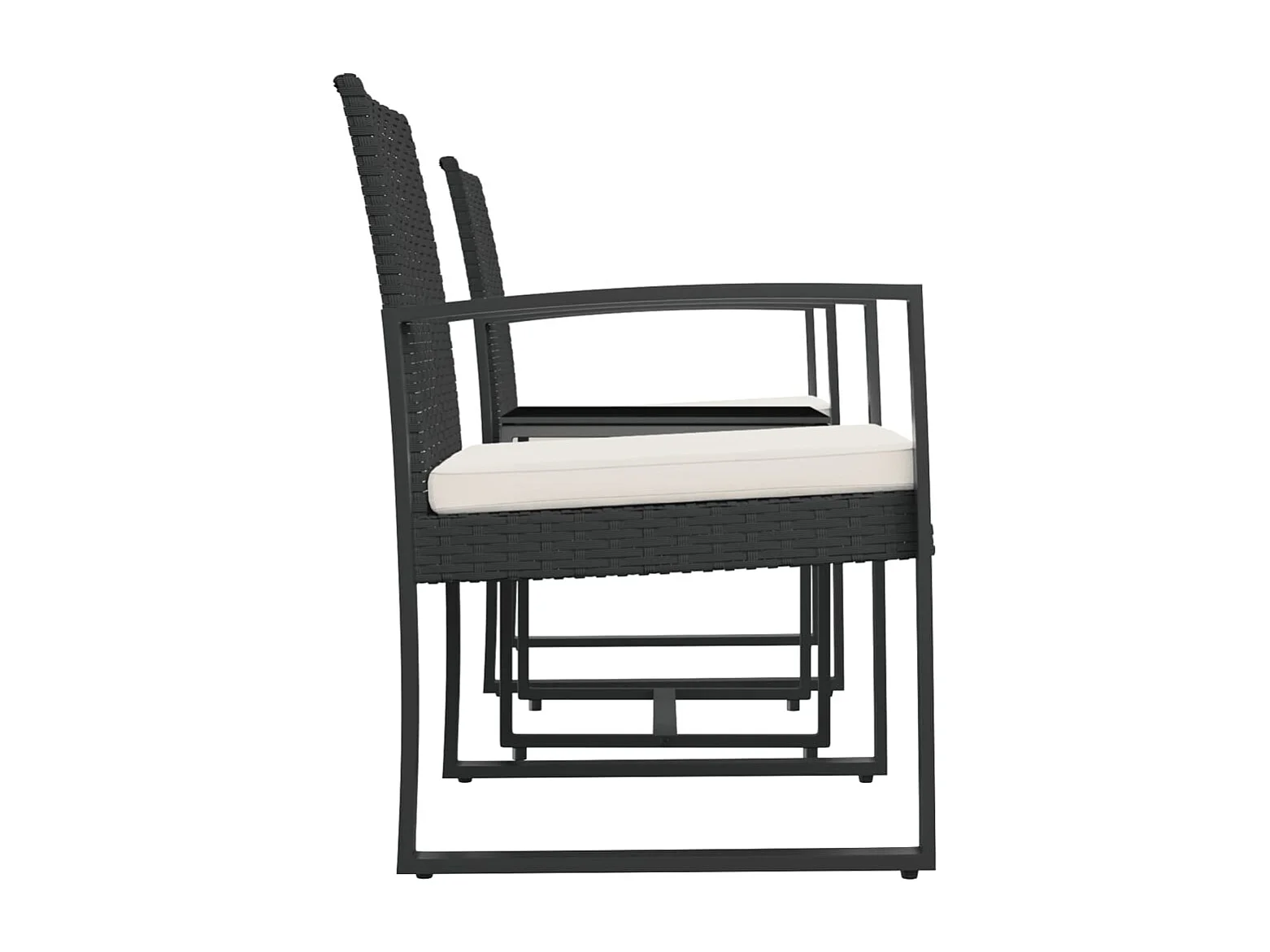 Marie-Philomène Ensemble à manger de jardin avec coussins 3 pcs noir rotin PP
