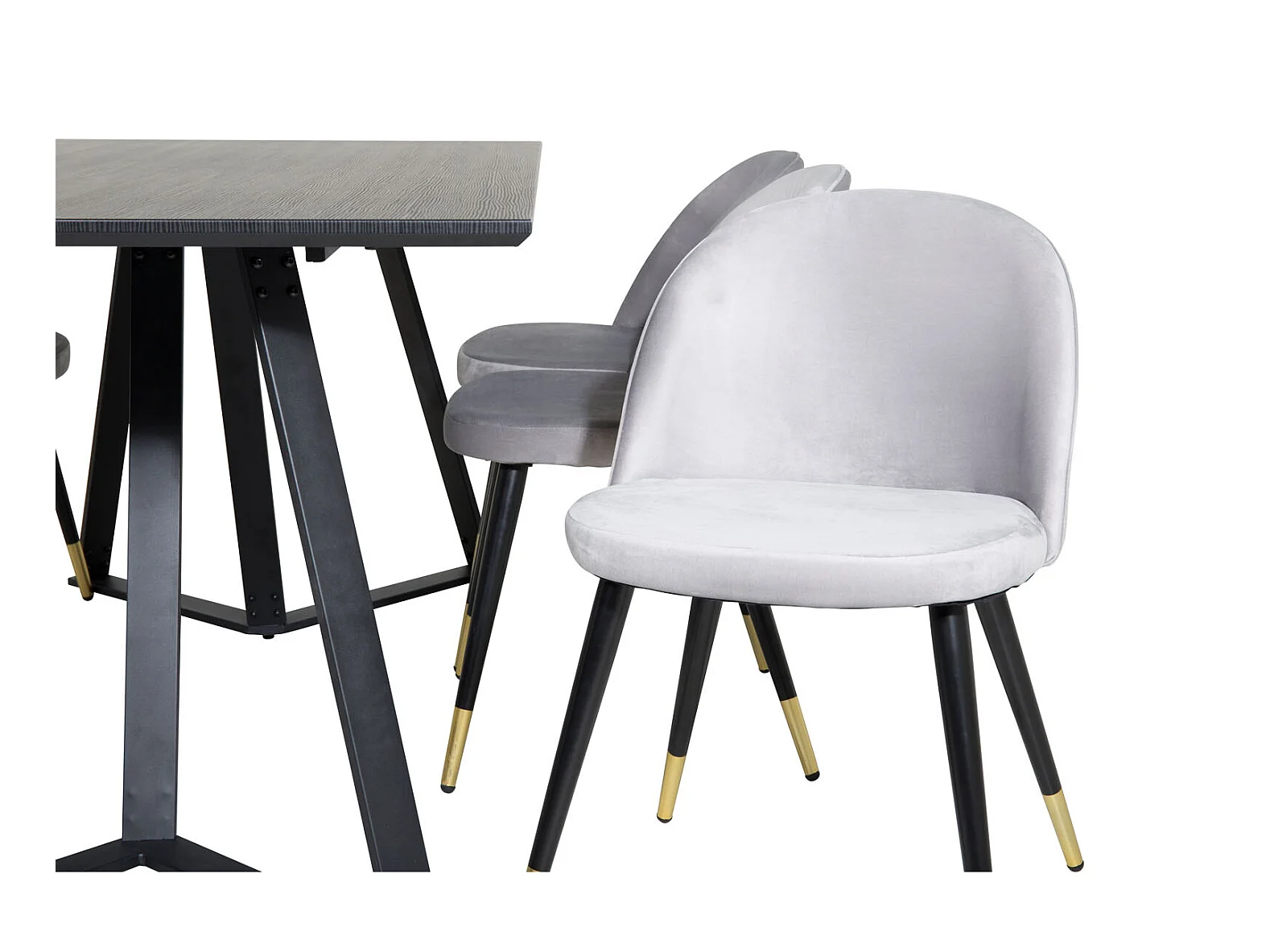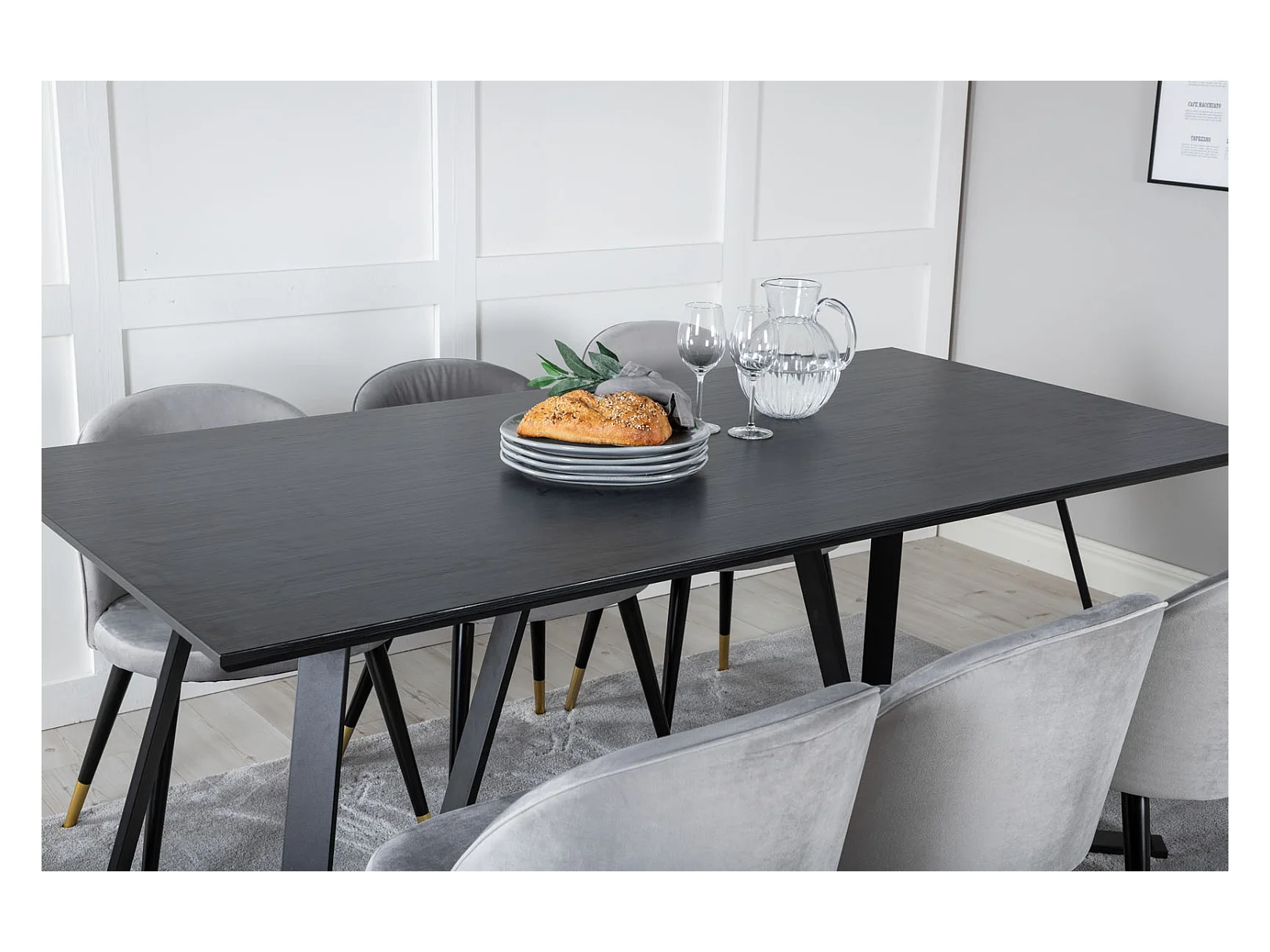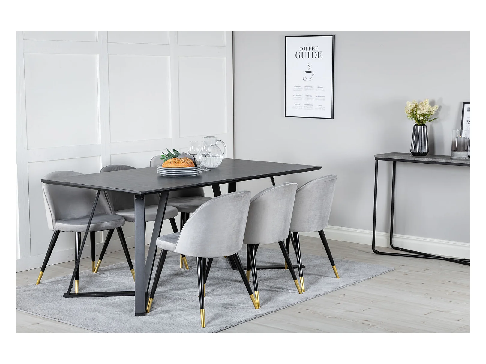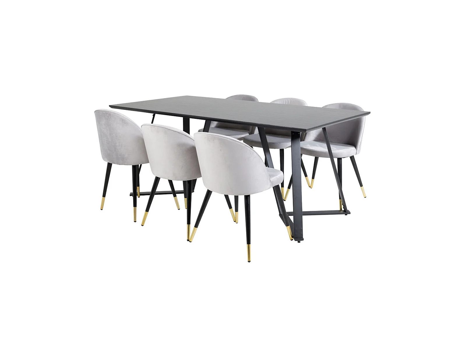 PiazzaGRBL ensemble table, table gris et 6 Velvet chaises noir.