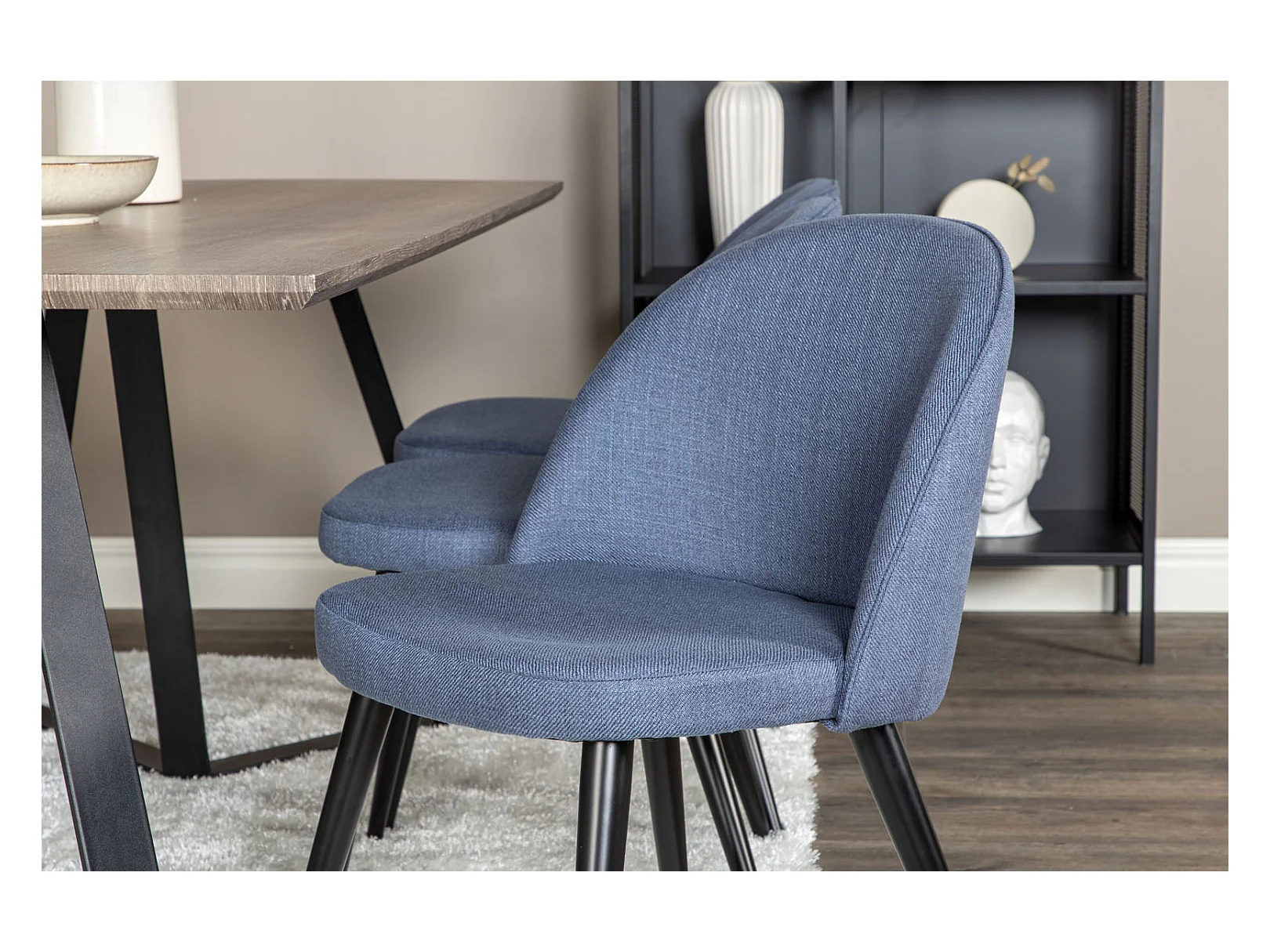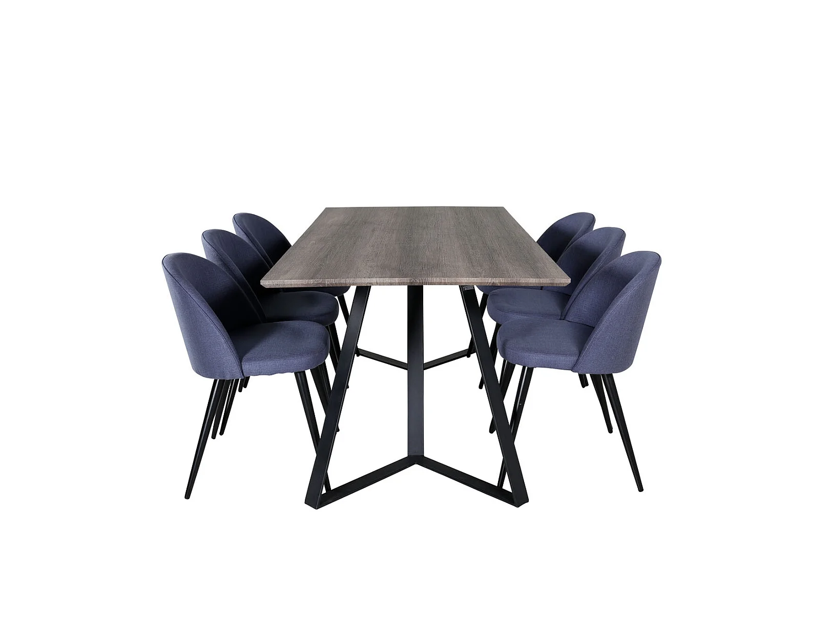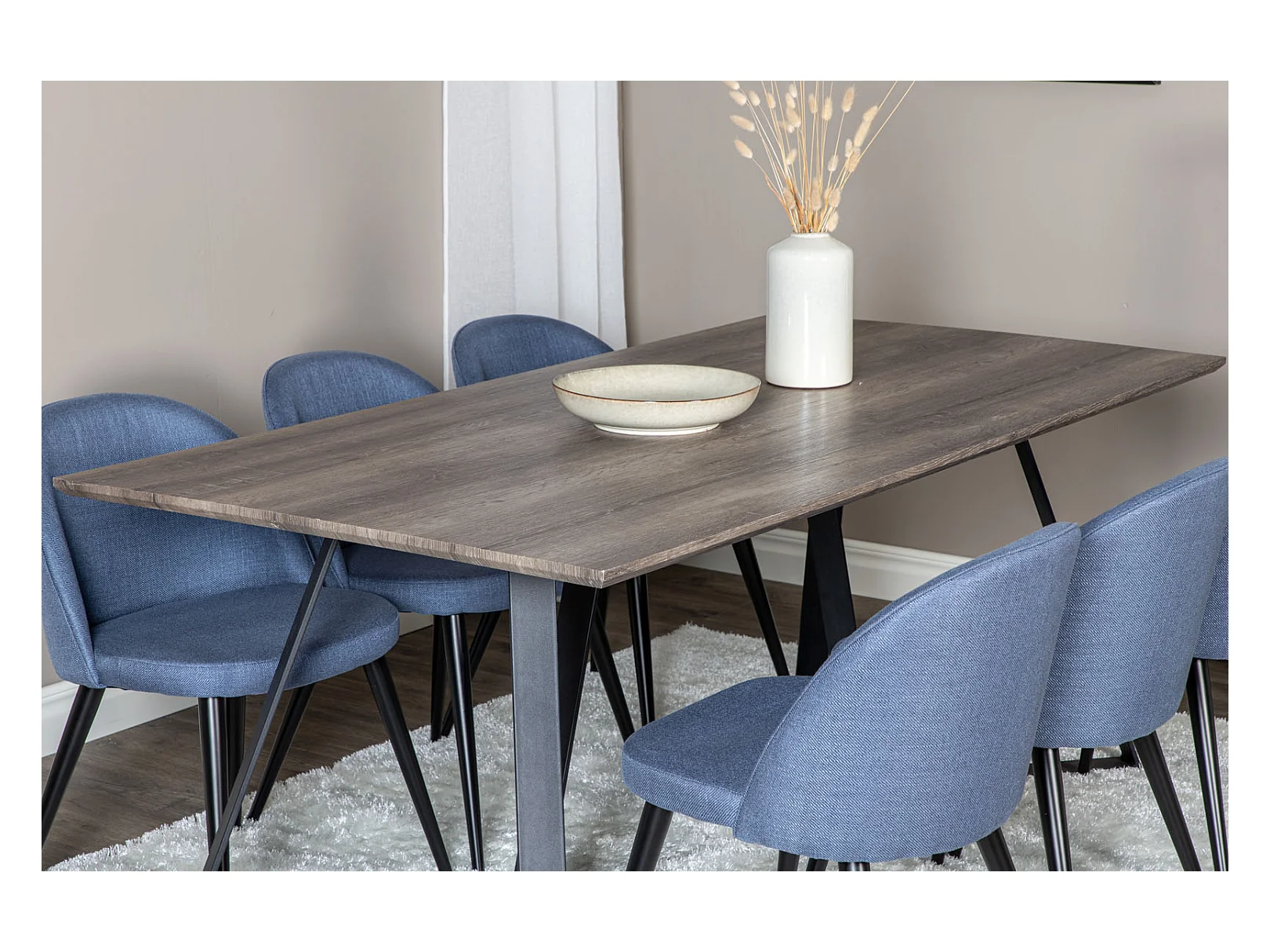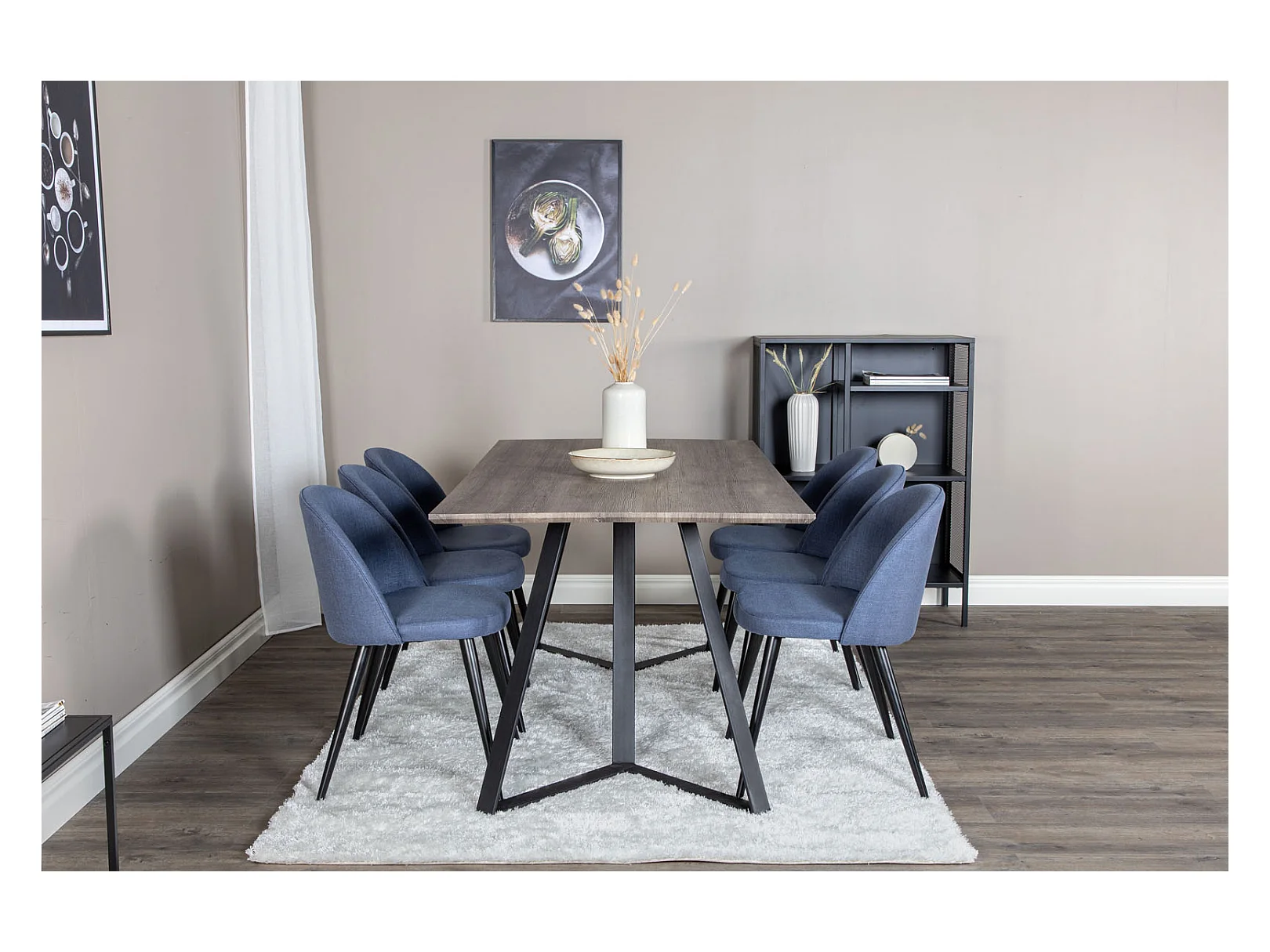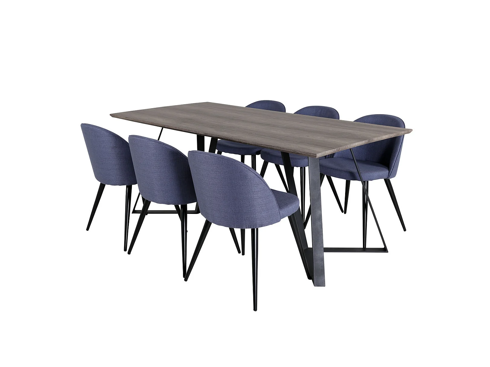 MarinaGRBL ensemble table, table El bois décor gris et 6 Velvet chaises bleu.