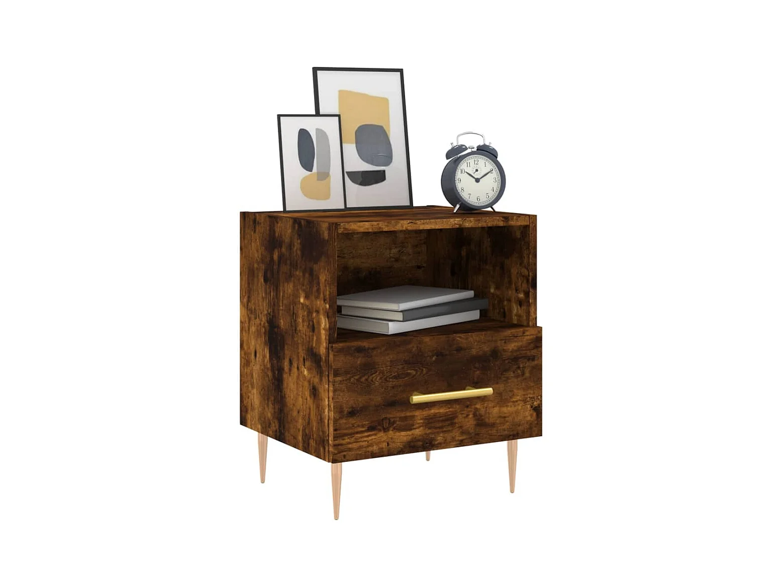 Bruni Table de chevet chêne fumé 40x35x47,5 cm bois d’ingénierie
