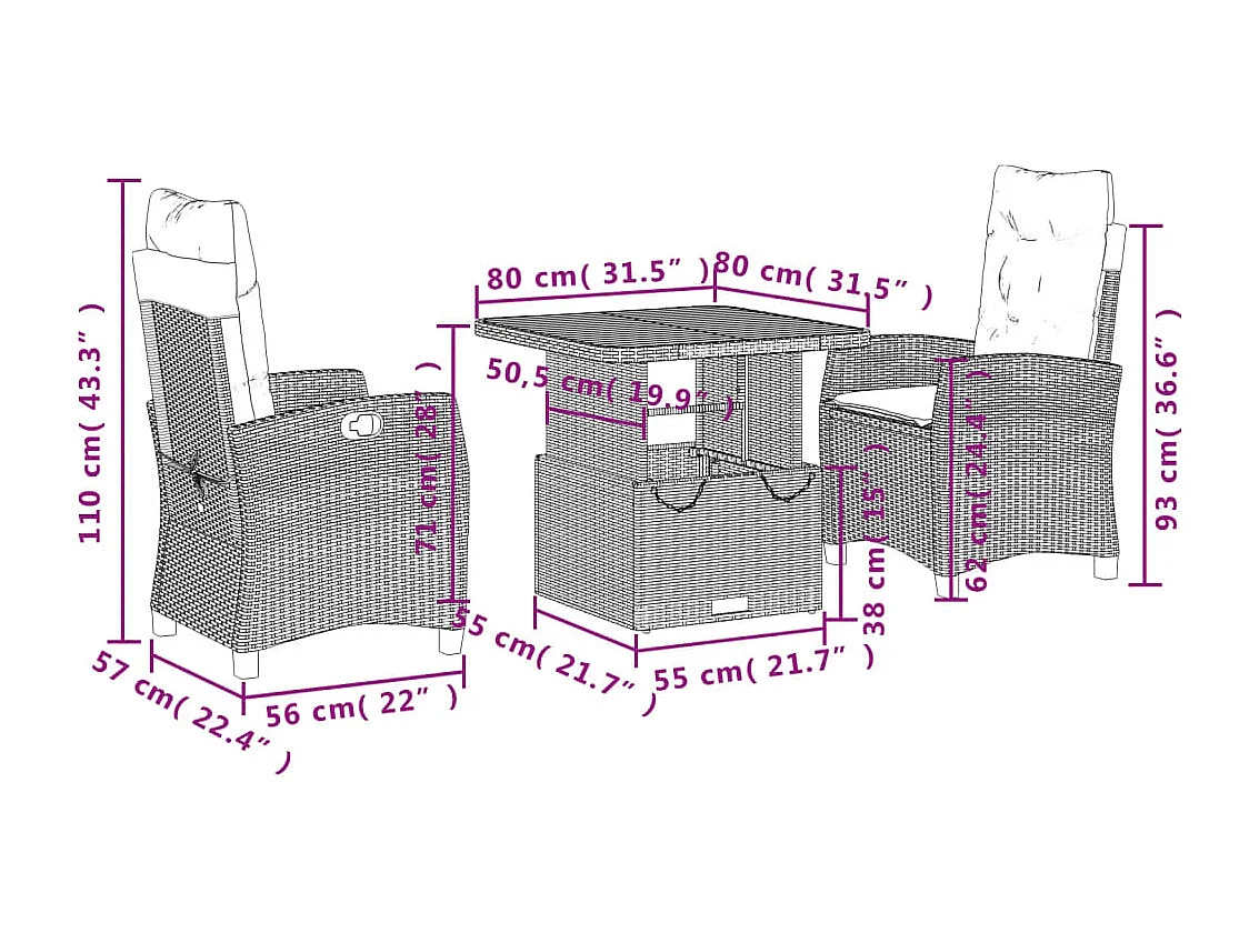 Onhaye Ensemble à manger de jardin avec coussins 3 pcs Noir