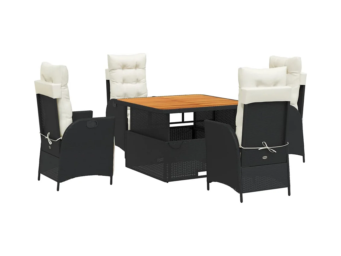 Marius Ensemble à manger de jardin coussins 5pcs Noir Résine tressée