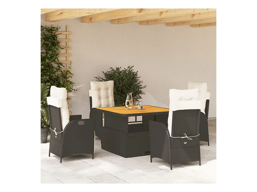 Onhaye Ensemble à manger de jardin coussins 5pcs Noir Résine tressée