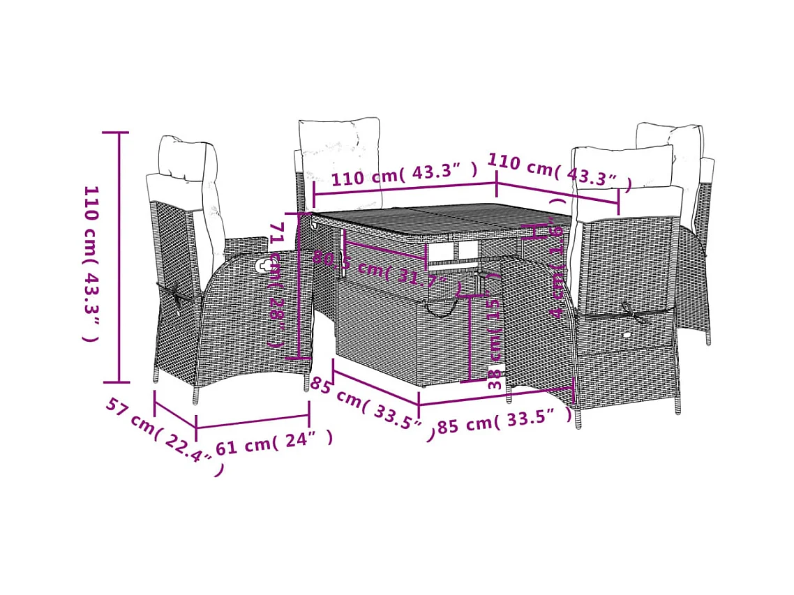 Isyra Ensemble à manger de jardin coussins 5pcs Noir Résine tressée
