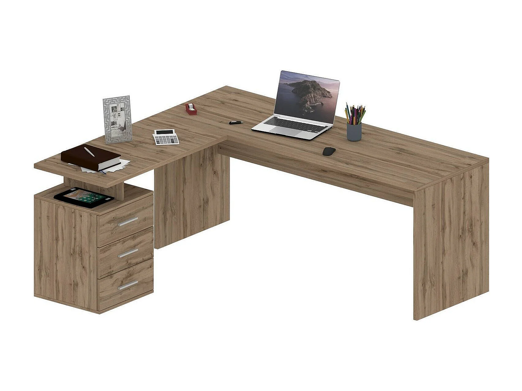 Mark Desk, Bureau PC d'angle, Table de bureau polyvalente, Bureau multi-positions peu encombrant, 100% Made in Italy, 160x60h75 cm, Chêne