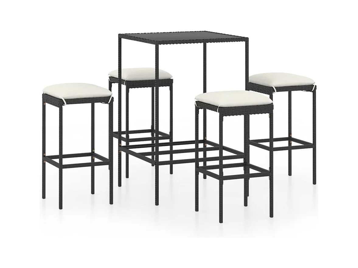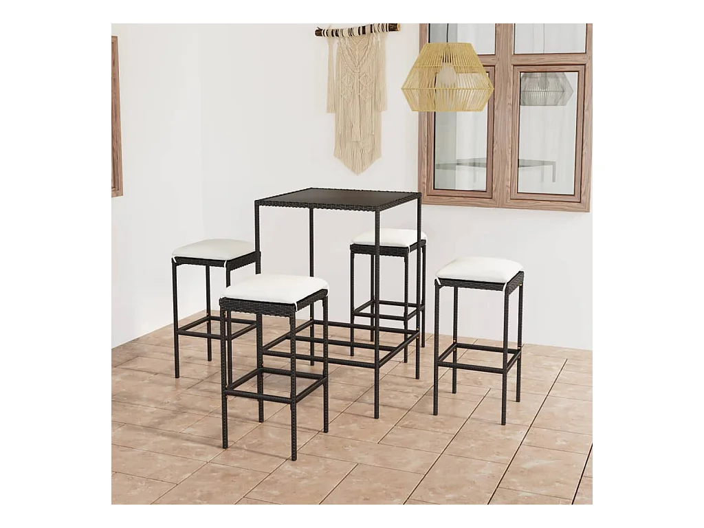 Vjorn Ensemble de bar de jardin 5 pcs avec coussins noir poly rotin