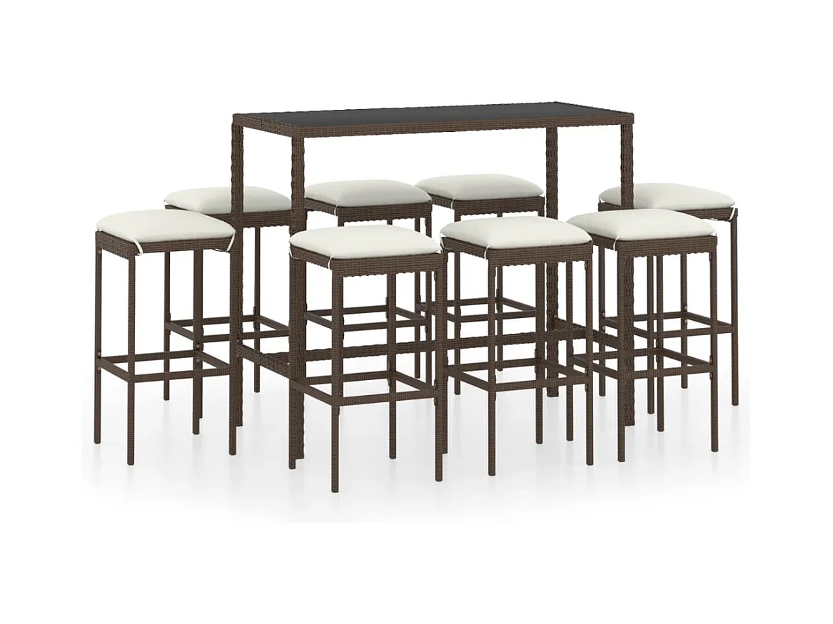 Mary Ensemble de bar de jardin 9 pcs coussins Résine tressée Marron