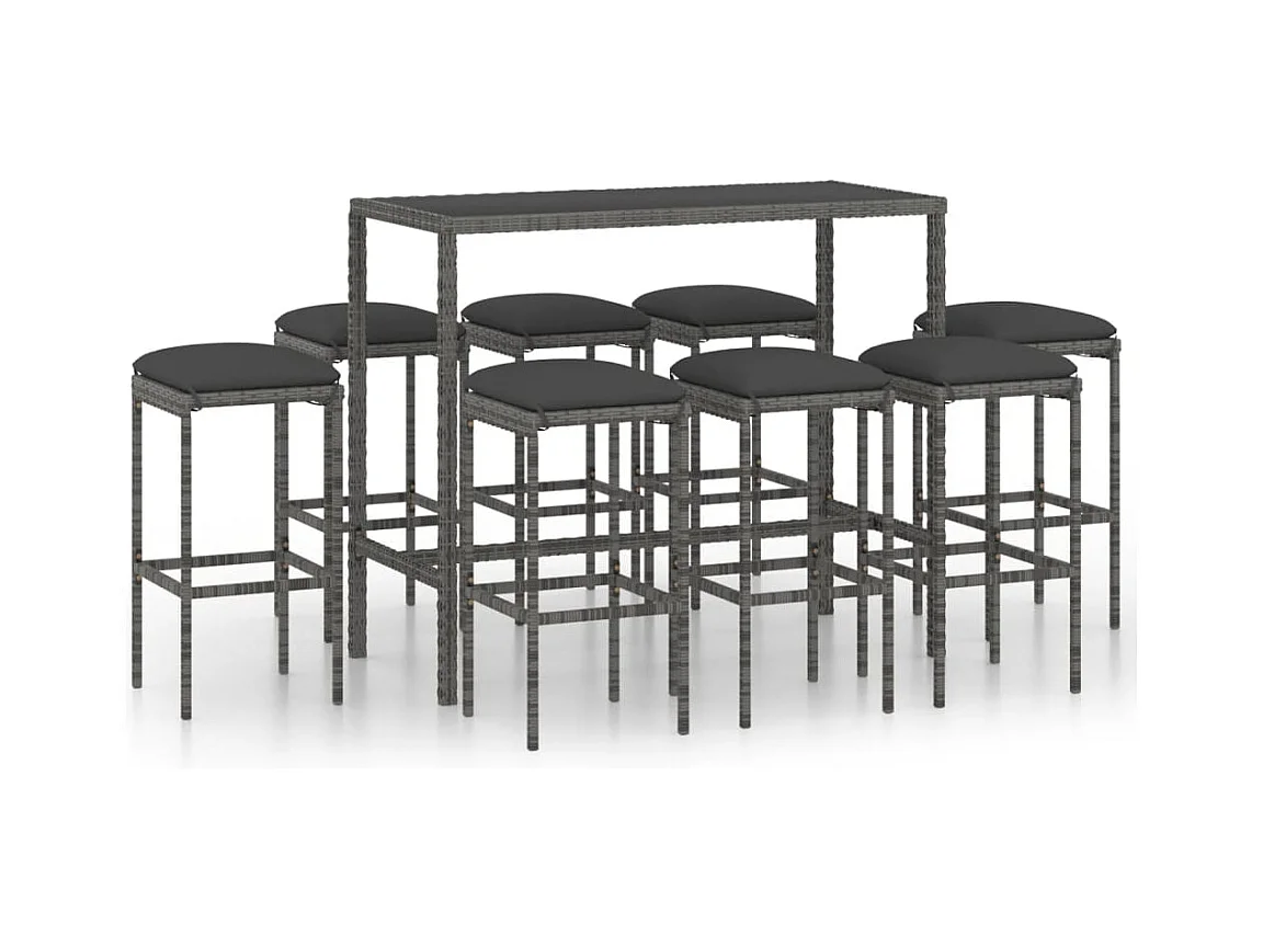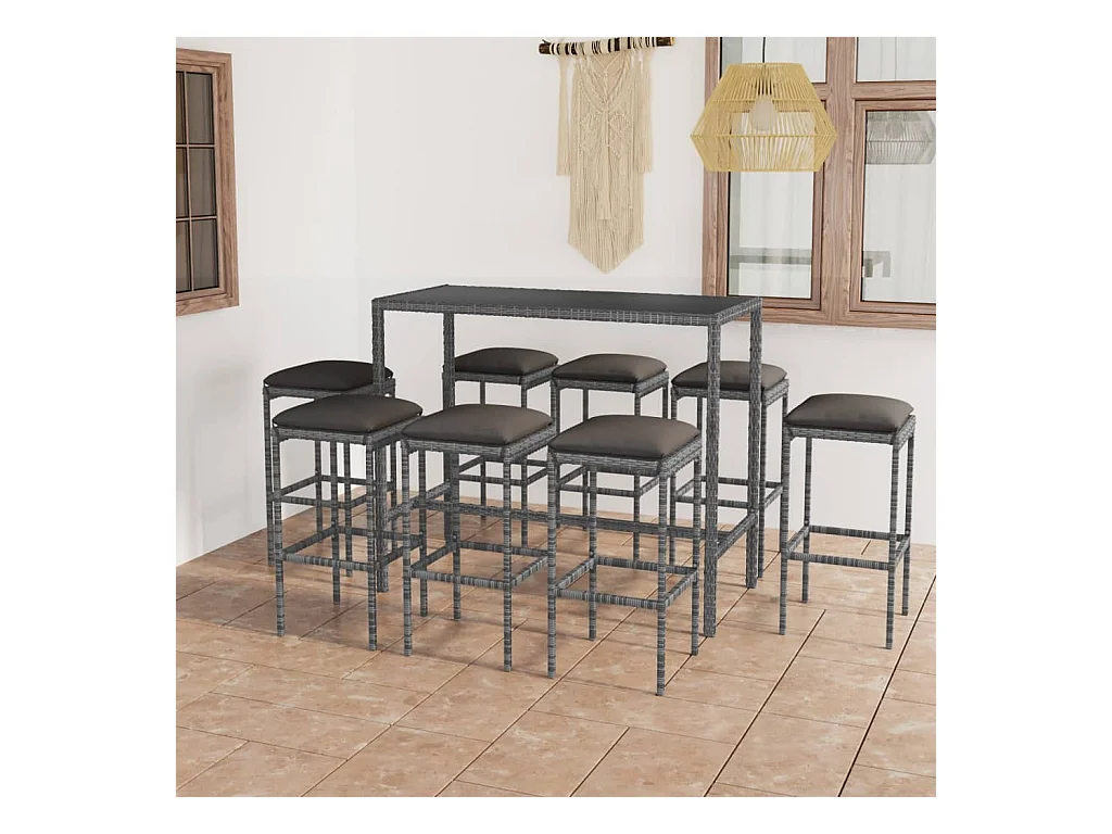 Grylin Ensemble de bar de jardin 9 pcs avec coussins gris poly rotin