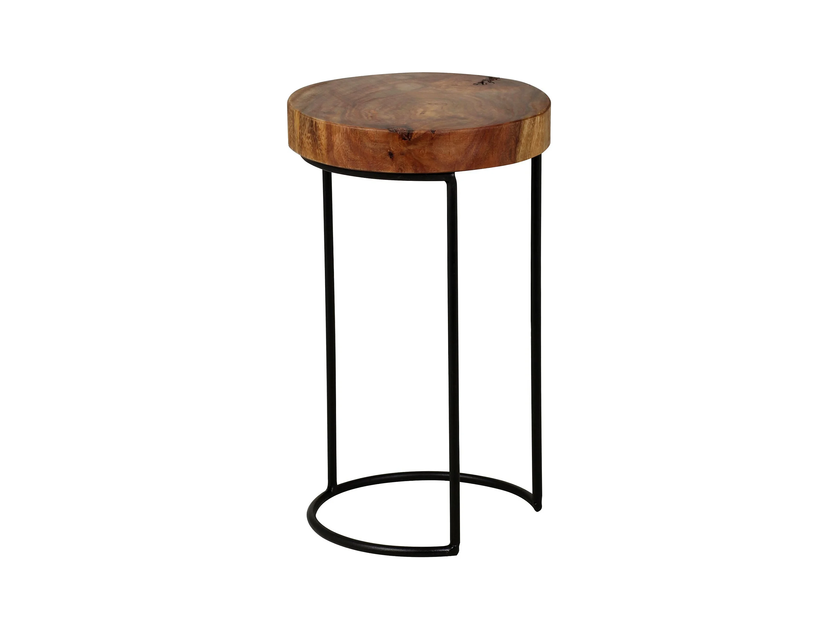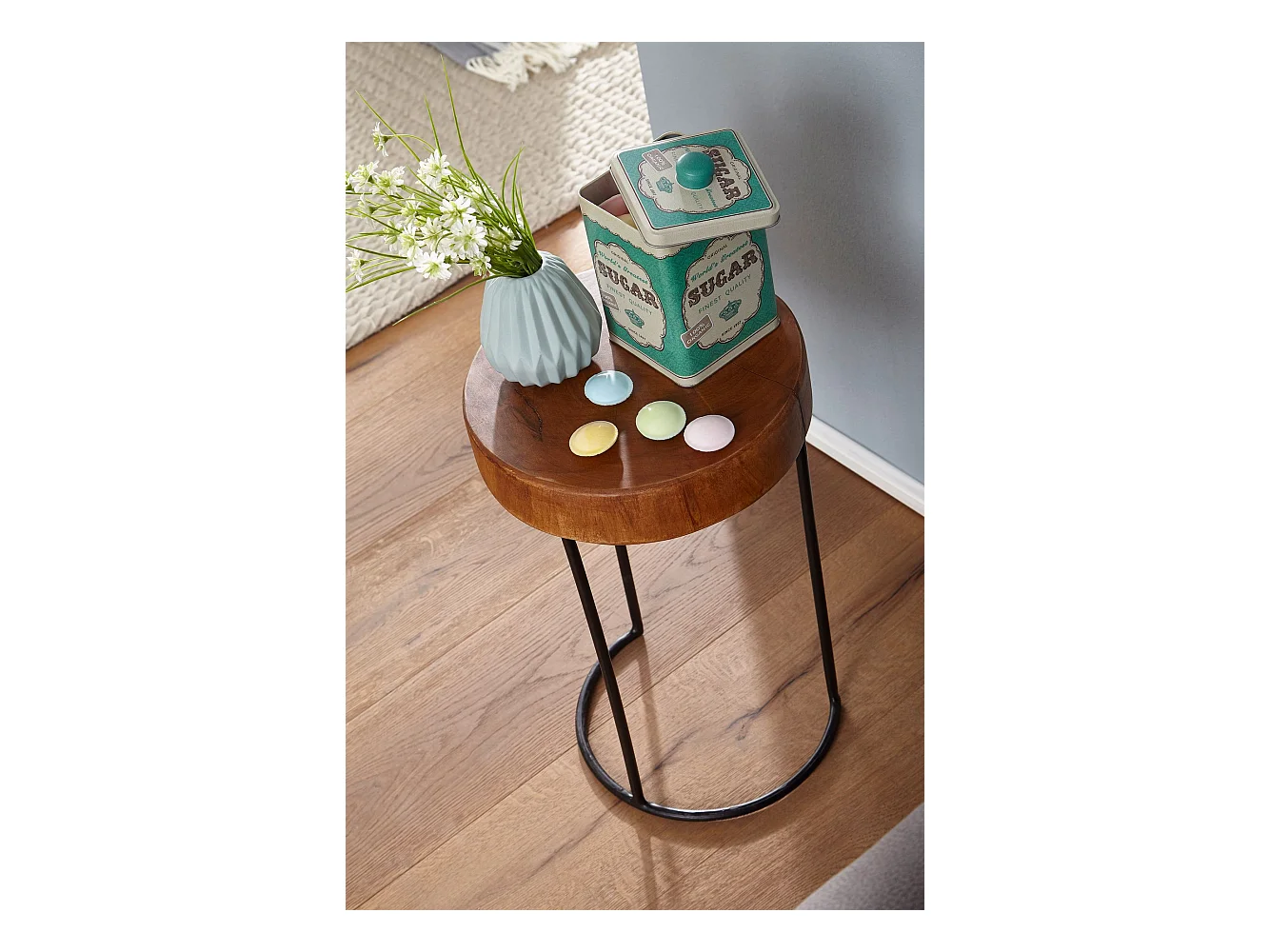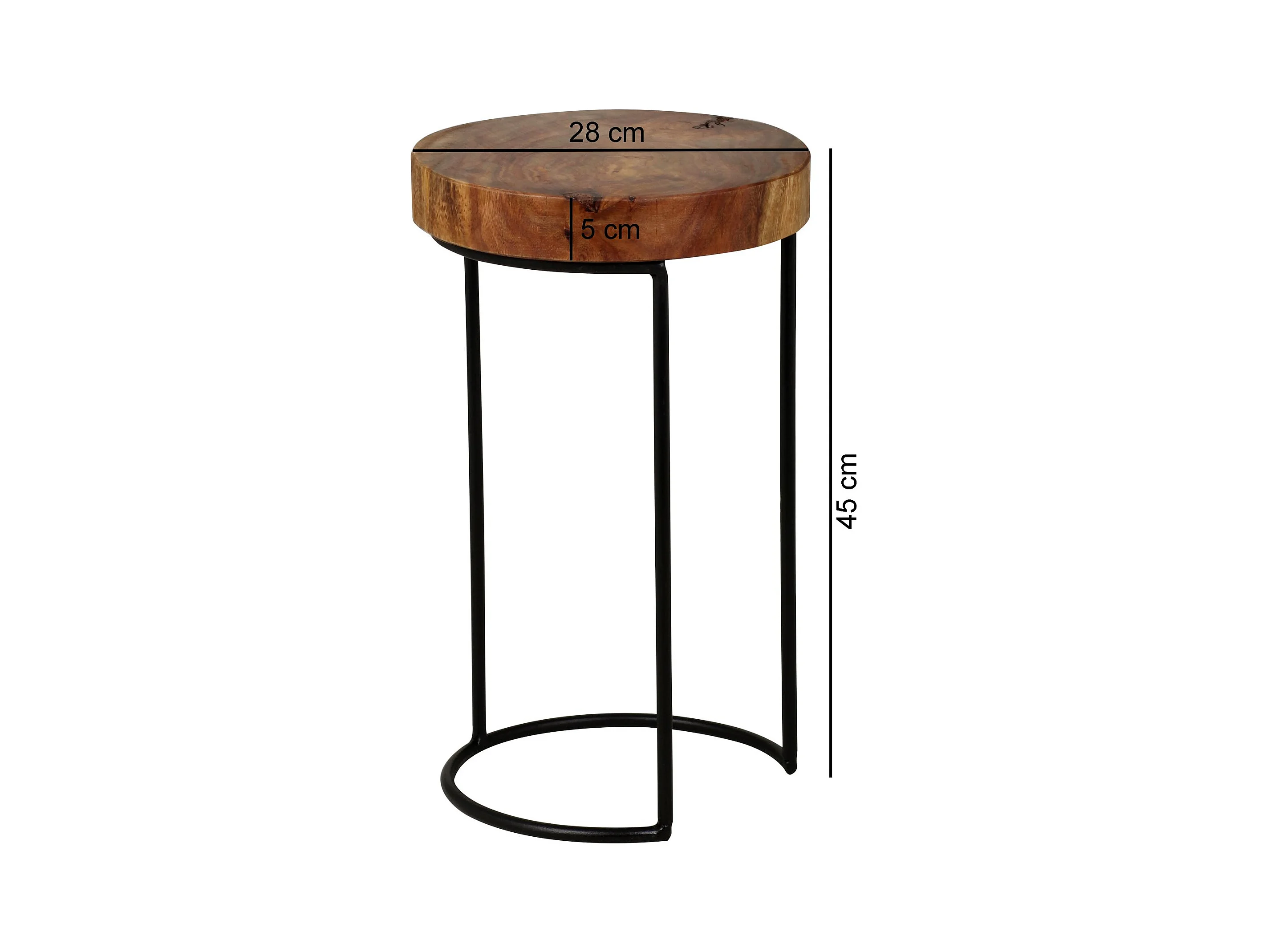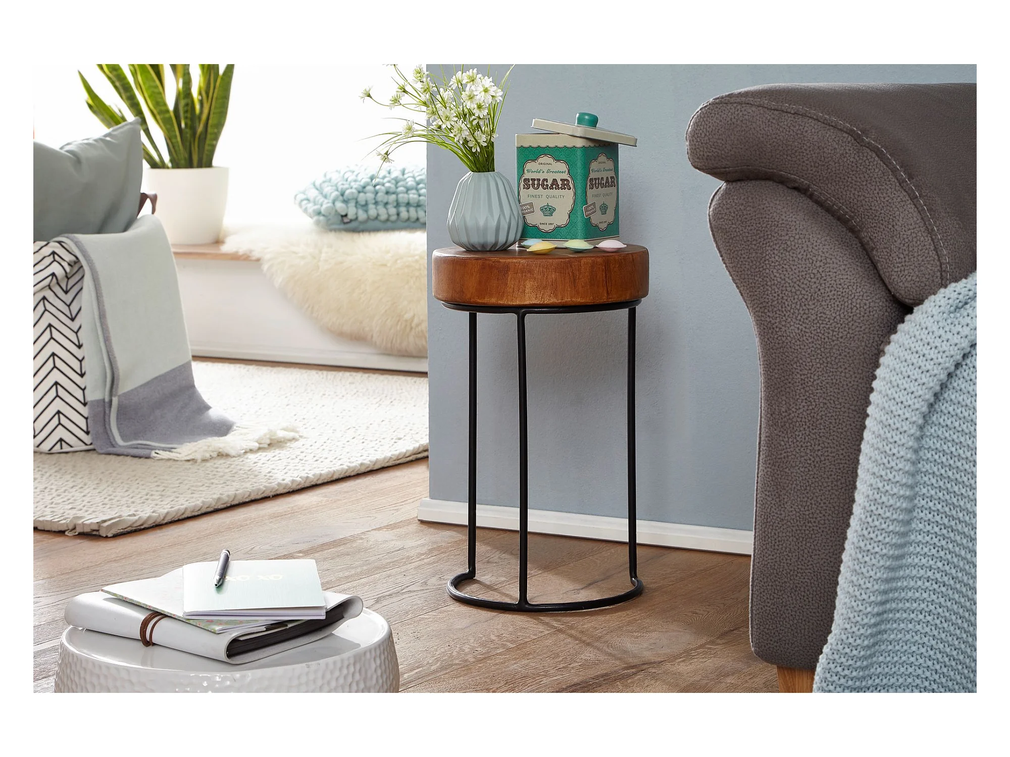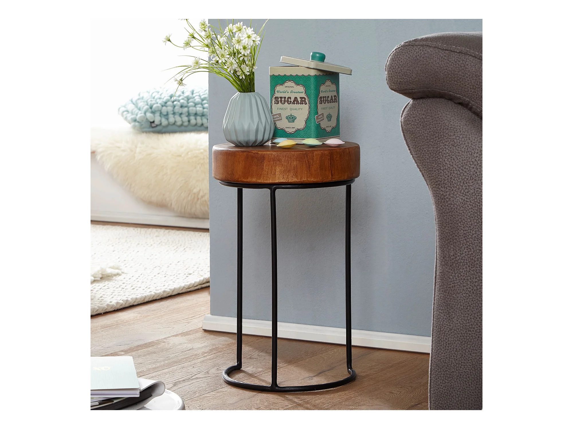 set van 2 salontafels Mango ronde massief hout / metalen salontafel | Industriële bijzettafel met zwarte metalen poten | 2-delige houten bijzettafel